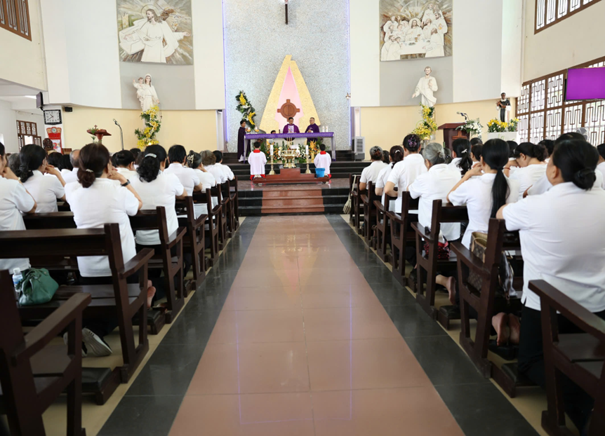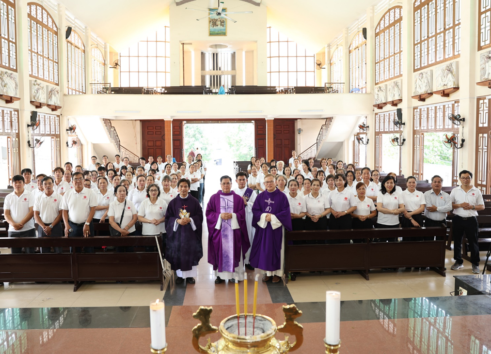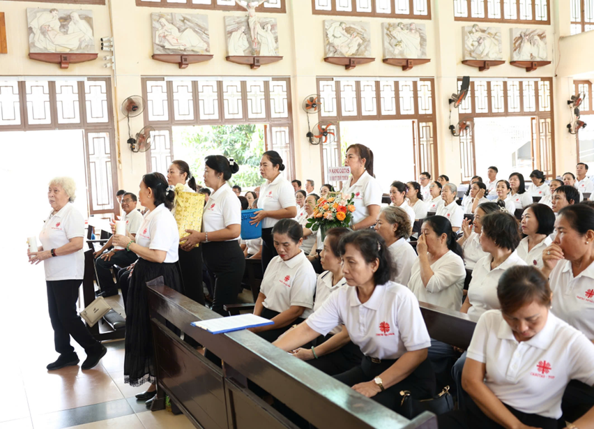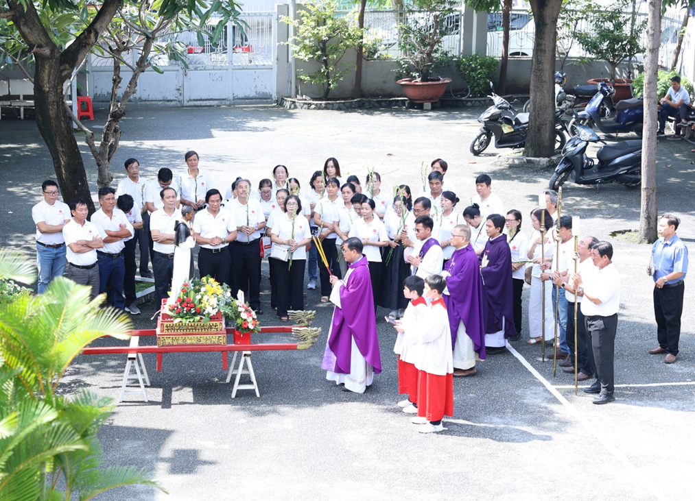 Đồng tế với ngài có linh mục Giuse Phạm Thanh Bình - Giám đốc Caritas Tổng Giáo phận Sài Gòn, linh mục Phêrô Nguyễn Đình Đạm - Phó Giám đốc Caritas TGP , cùng sự hiện diện của đông đảo các thành viên Caritas thuộc giáo hạt Thủ Thiêm.