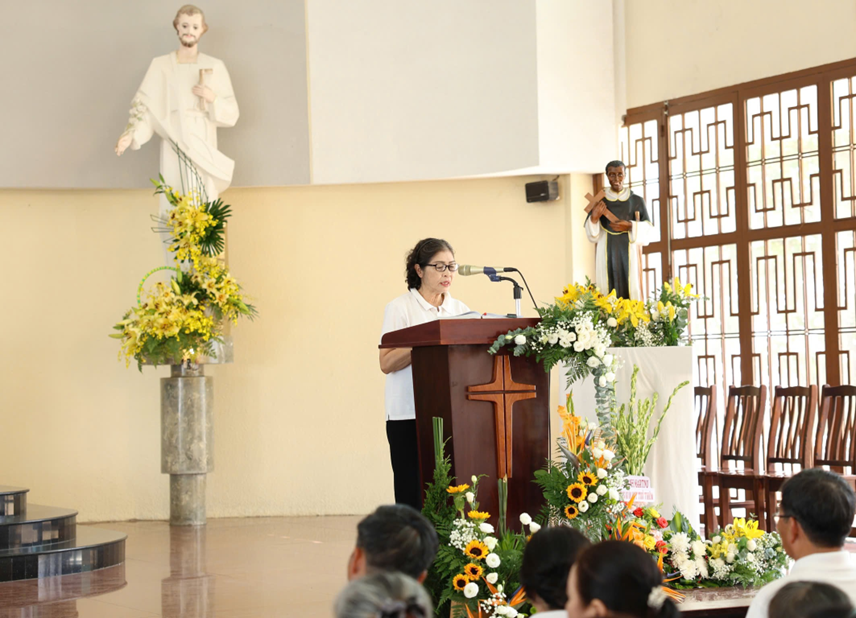 Sau lời nguyện hiệp lễ, đại diện Ban Liên kết Caritas giáo hạt Thủ Thiêm đã dâng lời cảm ơn quý Cha, đặc biệt là Cha linh hướng Đa minh và Hội đồng Giáo xứ Công Thành, đã tạo điều kiện và tổ chức Thánh lễ mừng bổn mạng long trọng, sốt sắng.