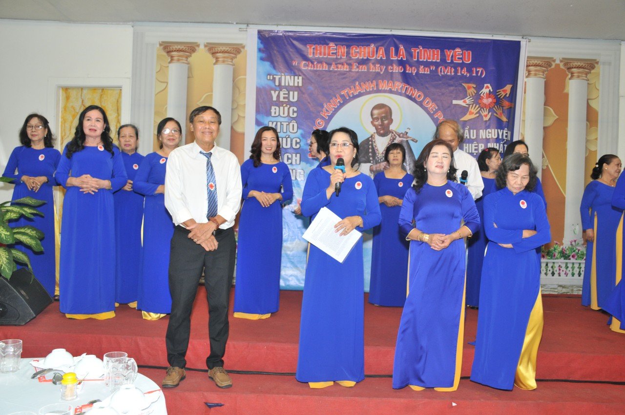 Trong tiệc mừng, chị Trưởng Cecilia Bích Hồng đã đại diện Caritas Tam Hà bày tỏ lòng biết ơn đến quý Bề trên và nhiều thành phần hiện diện cũng như vắng mặt đã luôn nâng đỡ, đồng hành giúp Ban Caritas Tam Hà thực thi trách nhiệm bác ái của mình. Tất cả các thành viên Ban Caritas giáo xứ Tam Hà đã cùng bày tỏ niềm vui khi trình bày những bài hát chào đón và cùng múa cử điệu qua bài Hành Khúc Caritas, để qua lời bài hát, nói lên sự hiệp thông, tinh thần hăng say đoàn kết cùng nhau thực thi trách nhiệm yêu thương và phục vụ người nghèo trong tâm tình khiêm tốn như Thánh Bổn mạng Martino De Porres.