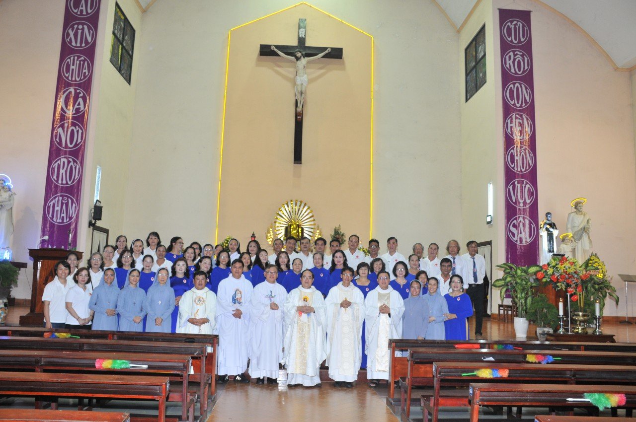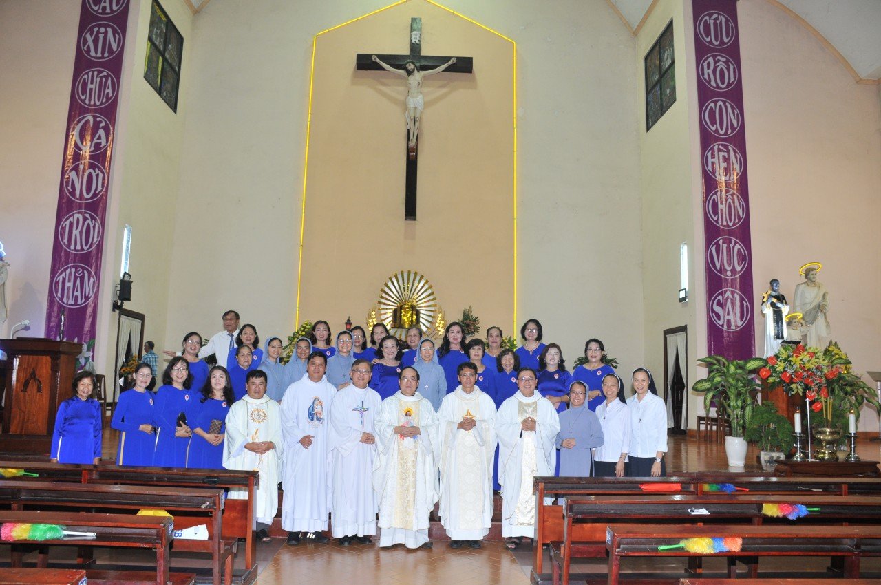 Thánh lễ kết thúc, Ban Caritas đã cùng quý linh mục, tu sĩ, quý ân nhân, quý khách và các thành viên Caritas cùng chụp hình lưu niệm và dùng bữa tiệc thân mật tại hội quán giáo xứ.