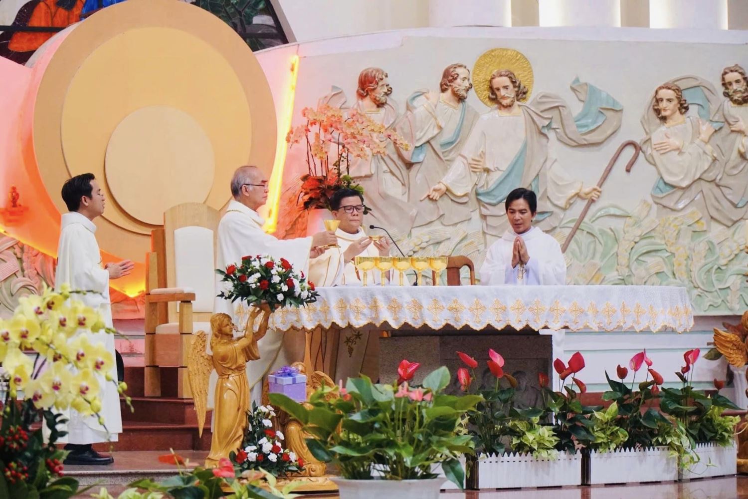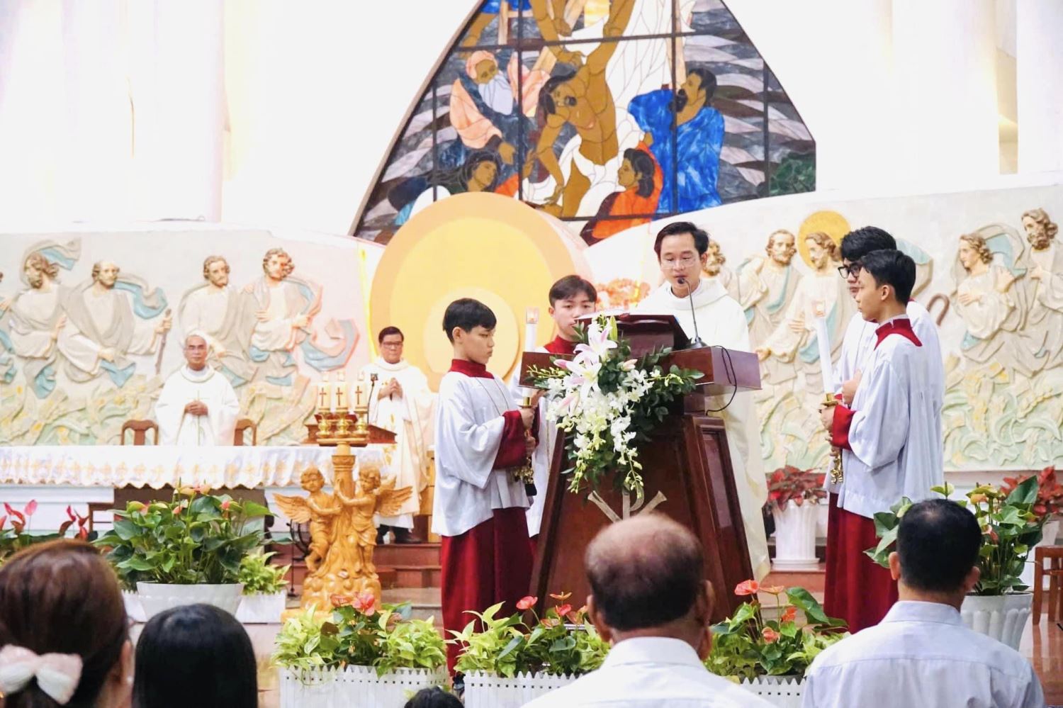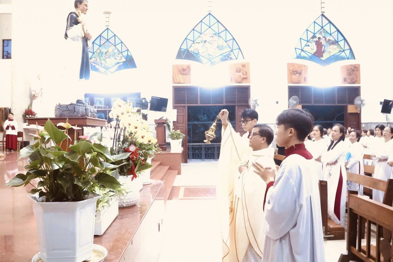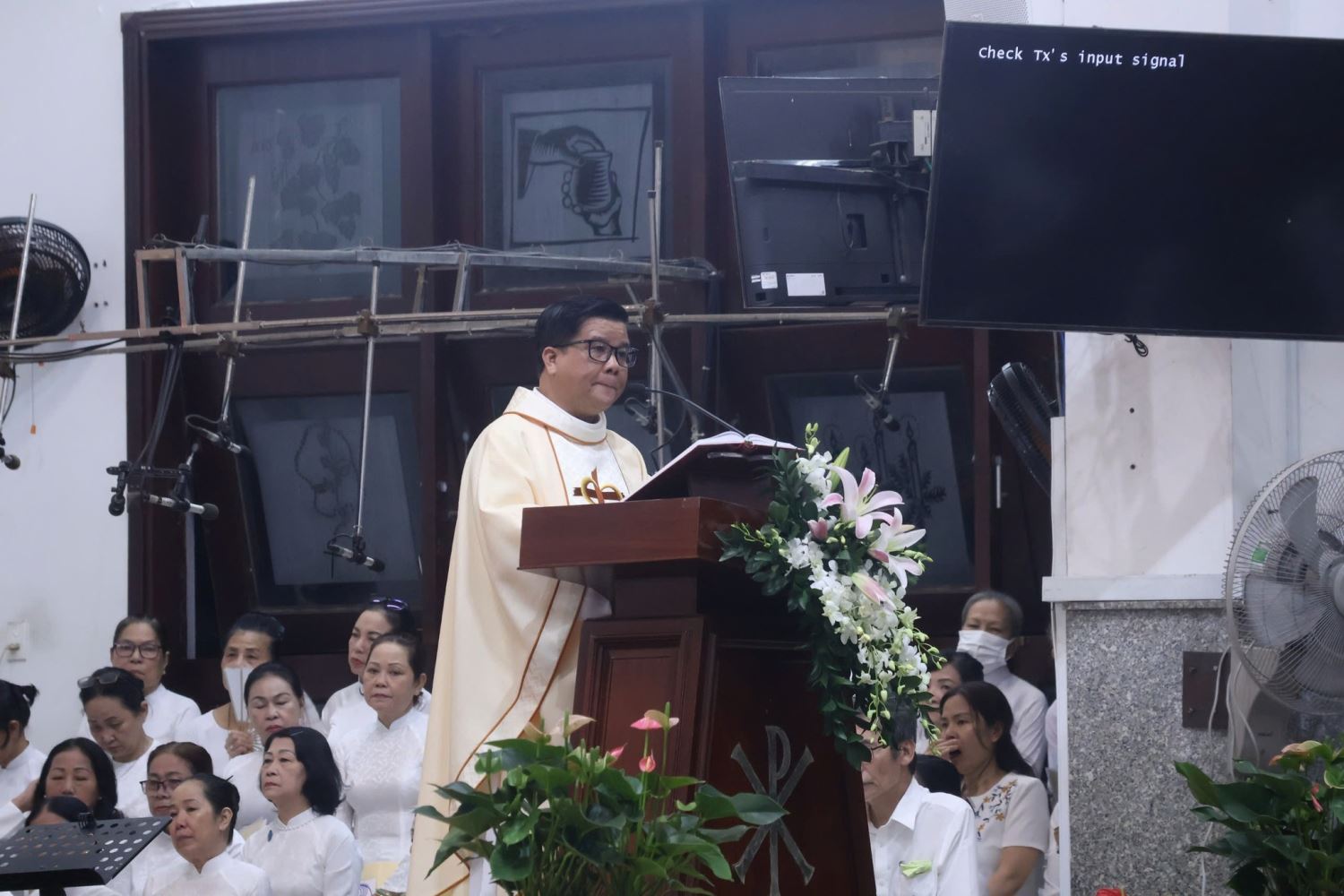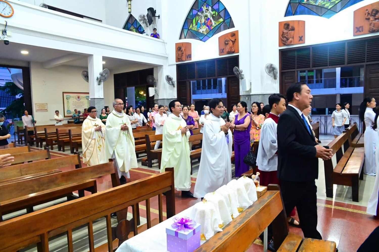 Đồng tế với ngài có Lm Anrê Dũng Lạc Nguyễn Trần Dương phó xứ, Lm Pr. Nguyễn Đình Đạm OP - PGĐ Caritas TGP và các linh mục thân hữu