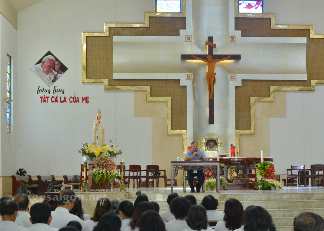 Kết thúc bài chia sẻ, Lm GB Phương Đình Toại mời gọi mọi người suy tư về việc bác ái chúng ta làm.
