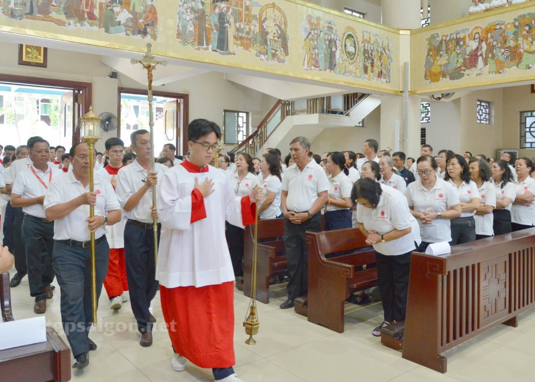 Lúc 8g, Lm Giuse, Giám đốc Caritas Sài Gòn đã vui mừng chào đón tất cả mọi người tham dự lễ mừng Bổn mạng Caritas Sài Gòn. Lm Giuse đã thánh hóa buổi lễ, với lời cầu xin Chúa Thánh Thần, và dâng buổi lễ hôm nay lên Đức Mẹ Mân Côi.