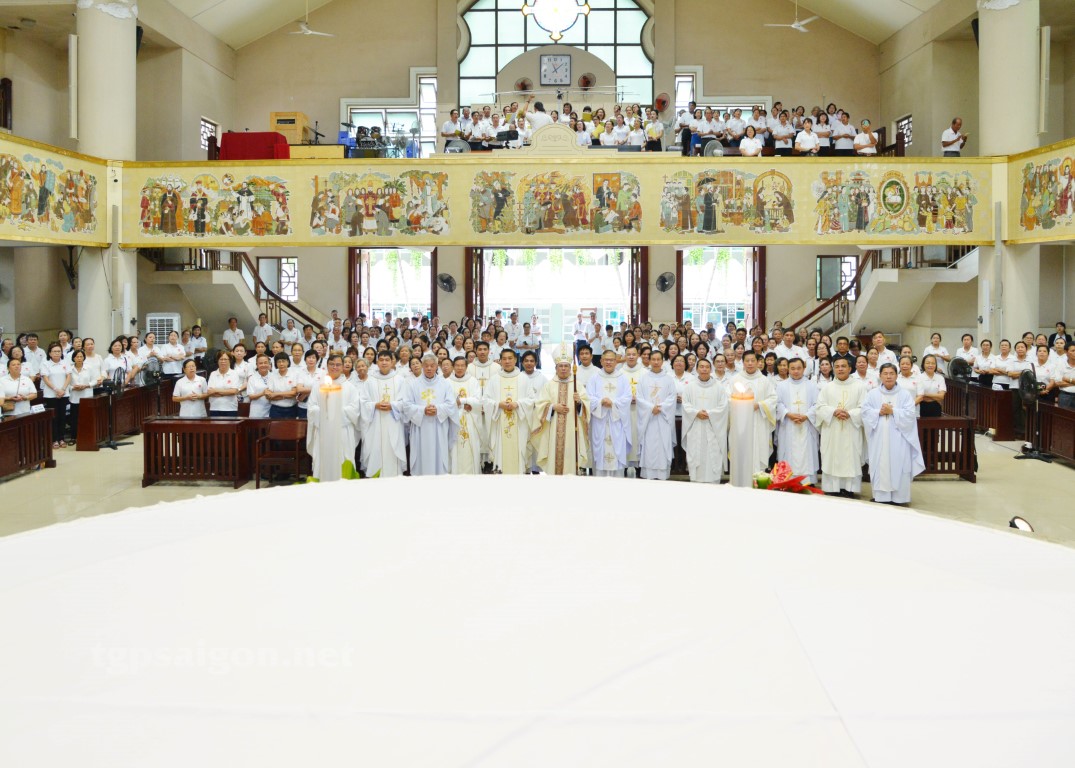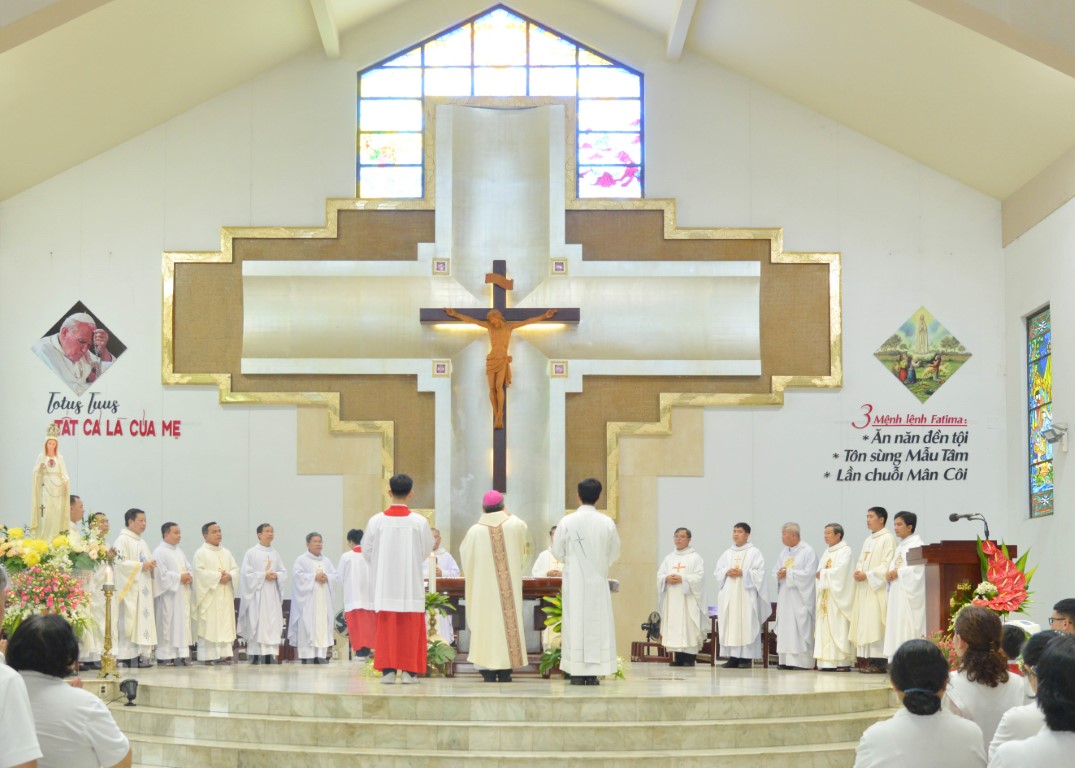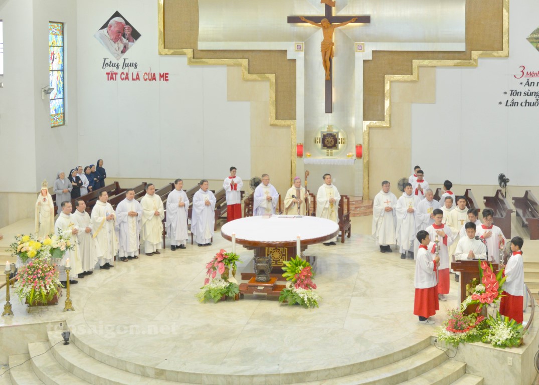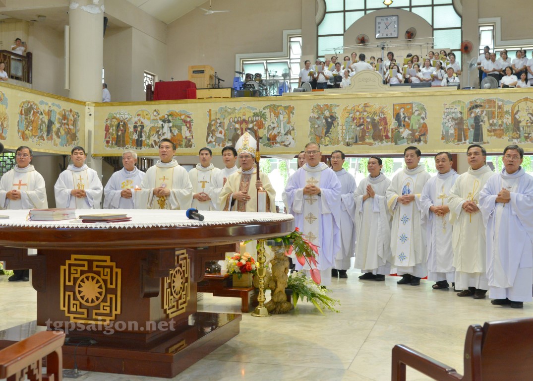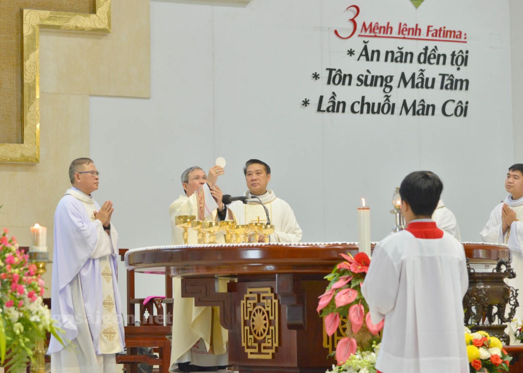 Đồng tế với ngài có 15 linh mục. Thánh lễ tạ ơn Thiên Chúa đã ban cho Giáo hội một vị Mục tử tốt lành, đạo đức, thánh thiện; củng cố đức tin cho chúng ta và giúp sống đẹp lòng Chúa. Xin Chúa ban ơn các thân nhân, ân nhân, những người qua đời vì dịch bệnh, thiên tai, bão lũ và cho chúng ta sống đúng sứ vụ Chúa trao.