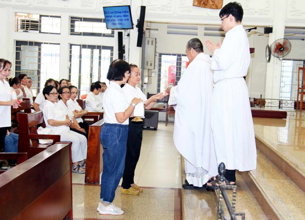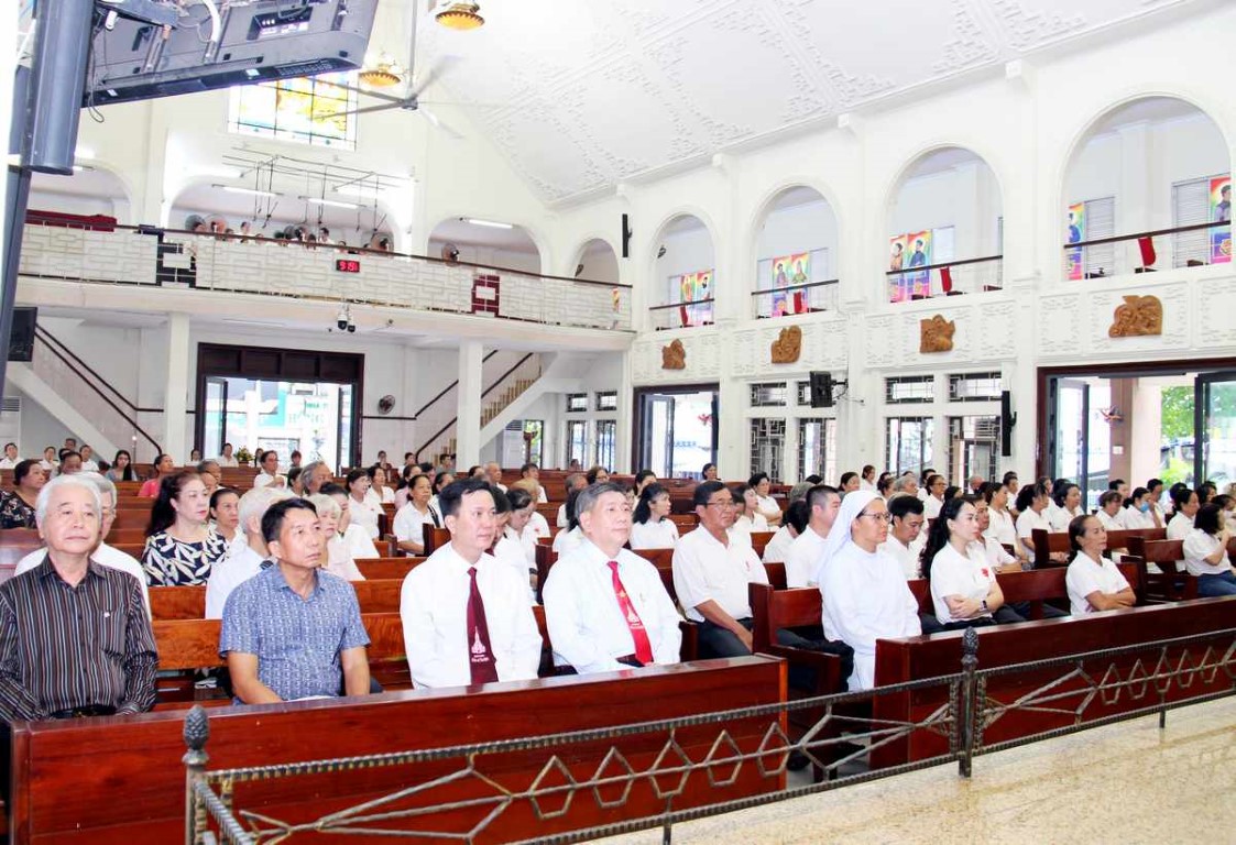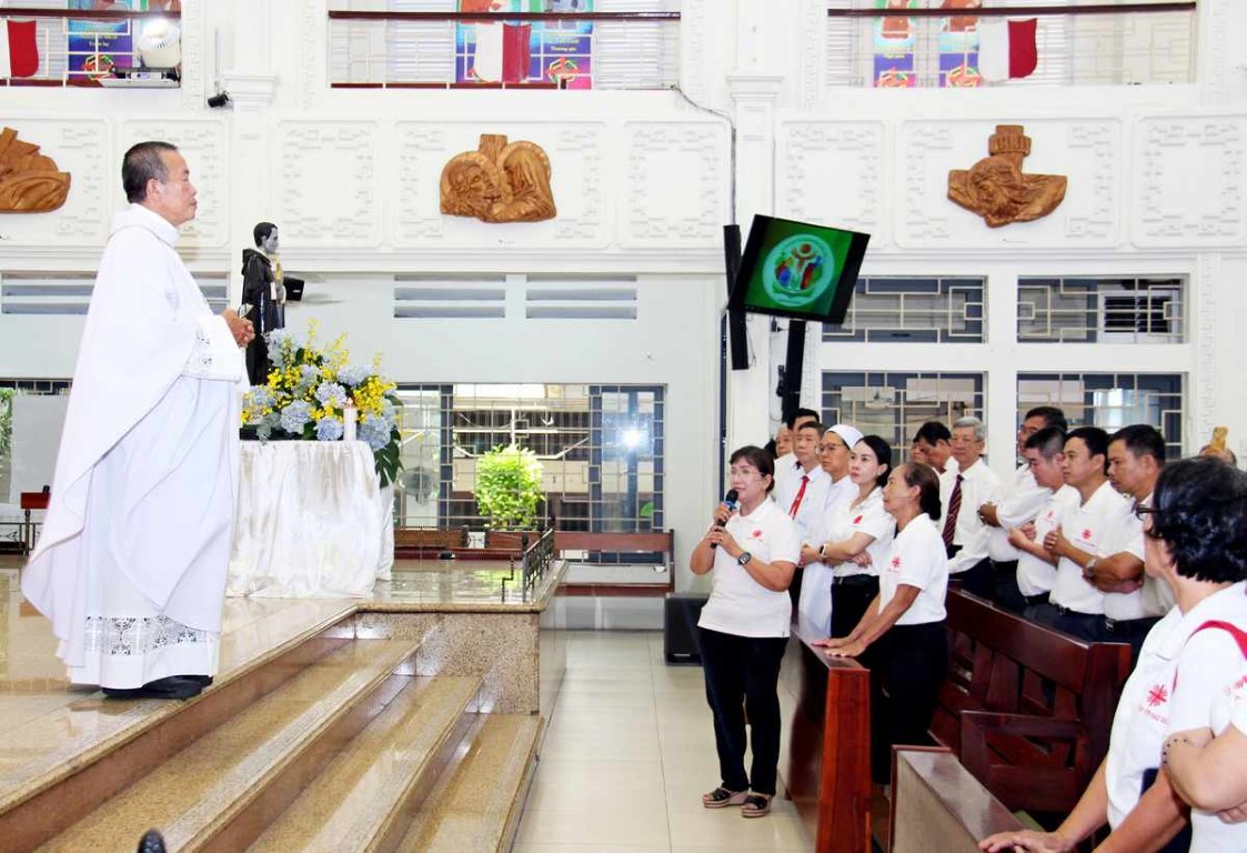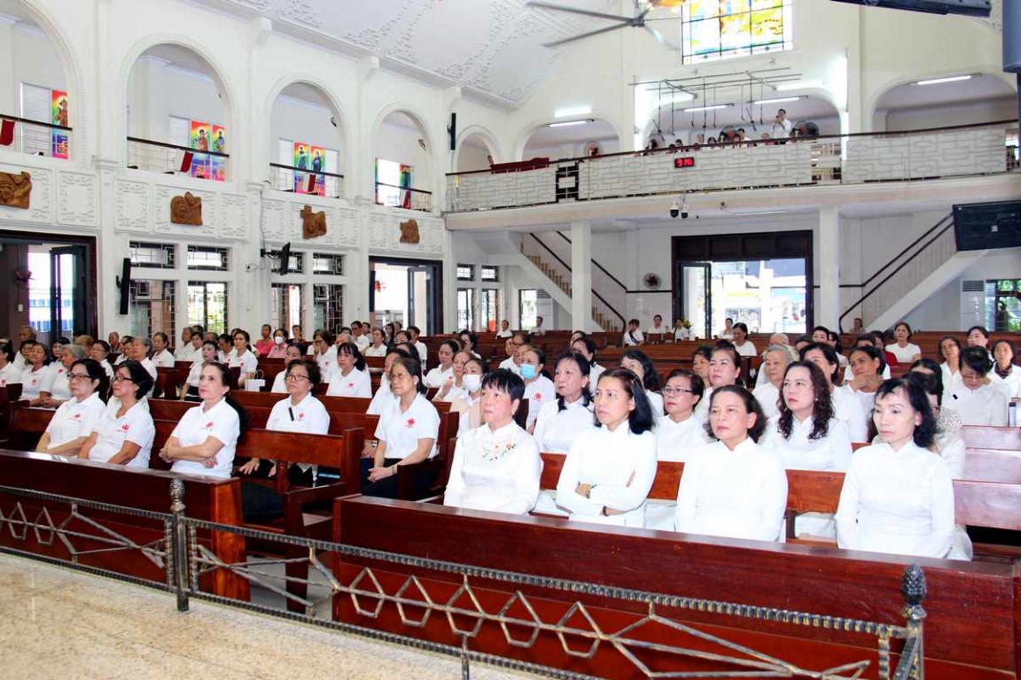 Hiệp dâng Thánh lễ có các nữ tu đại diện mạng lưới Caritas TGP Sài Gòn, HĐMV các giáo xứ, ban liên kết các giáo hạt, thành viên Caritas giáo hạt Tân Định, khách mời cùng cộng đoàn dân Chúa trong và ngoài giáo xứ.