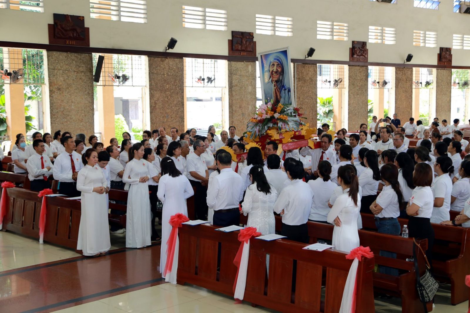 Trước Thánh lễ, lúc 9giờ30, cộng đoàn lắng đọng tâm hồn, sốt sắng trong kinh nguyện và chiêm nghiệm Tiểu sử Thánh Têrêsa Calcutta.