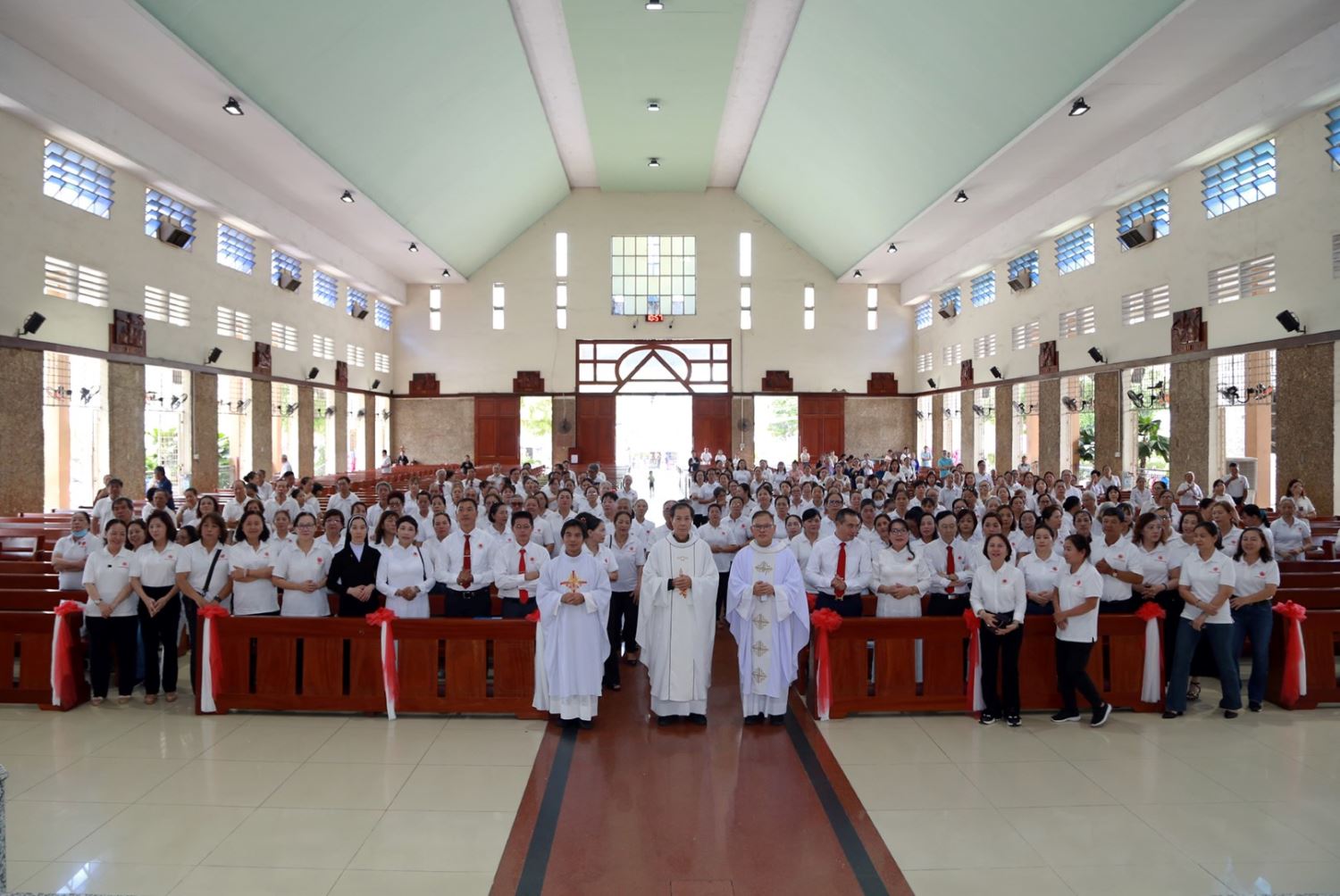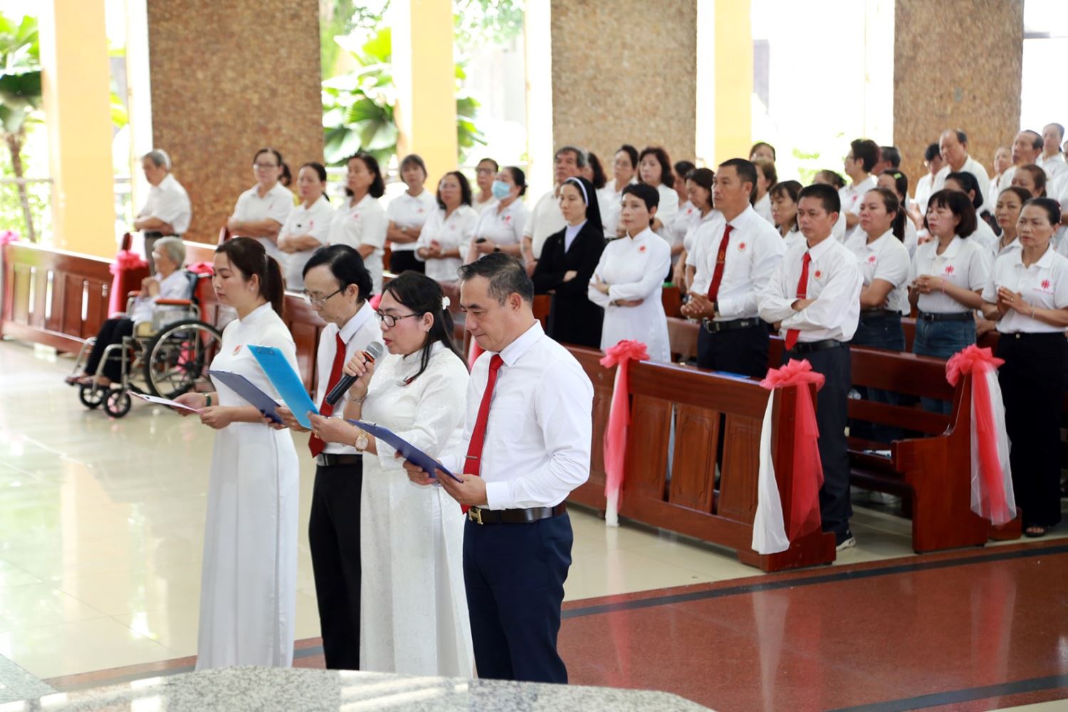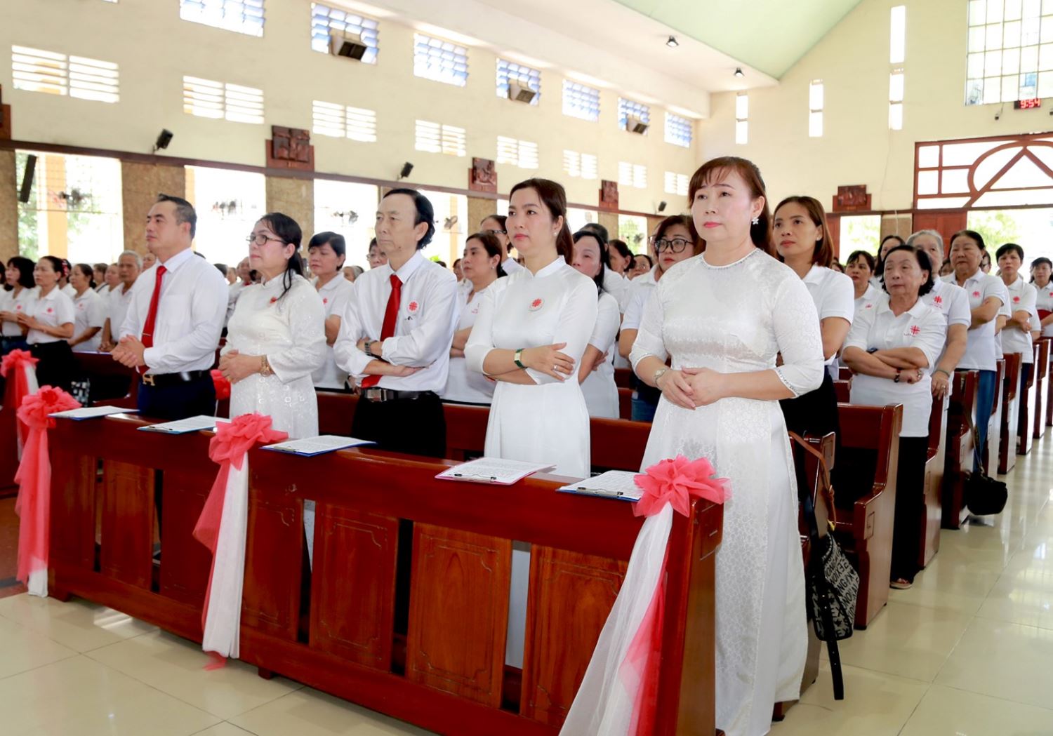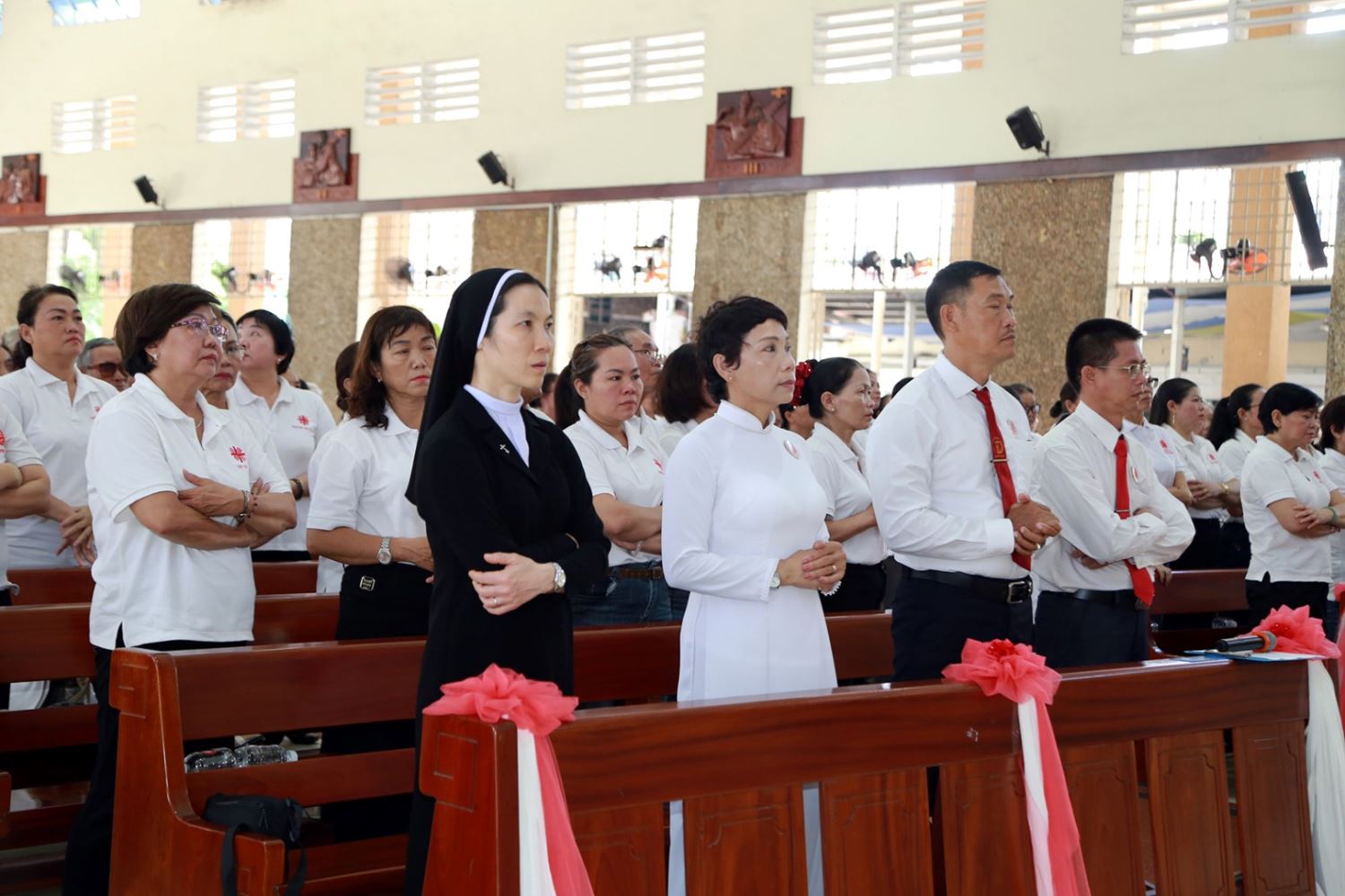 Hiệp dâng Thánh lễ có khoảng 300 người: Nữ tu Cecilia Nguyễn Thị Lan - Phụ trách Ban Liên Kết mạng lưới Caritas TGPSG; Ban Liên kết Caritas Hạt TSN, các tu sĩ, đại diện Caritas 18 giáo xứ trong hạt TSN, các ân nhân, thành viên Caritas và một số giáo dân.