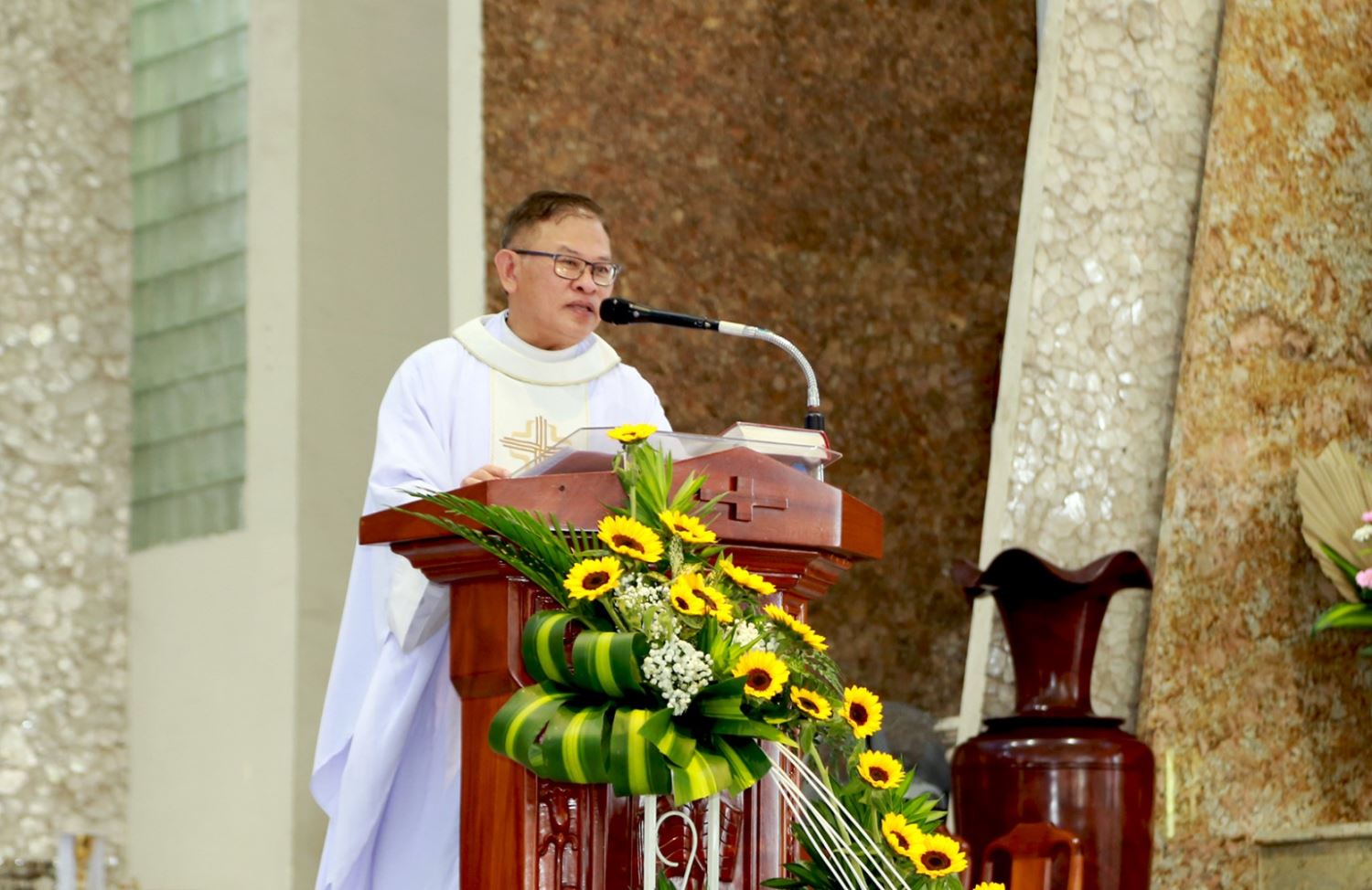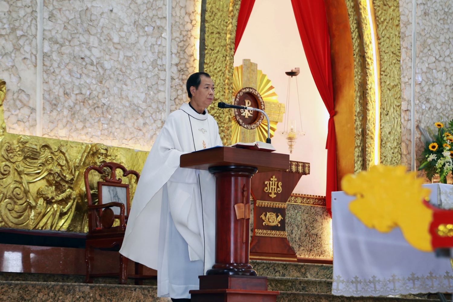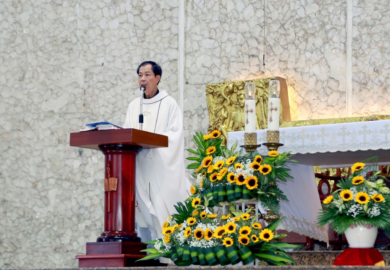 Lm chánh xứ Tân Phú Giuse Lê Hoàng - Quản hạt TSN - chủ tế Thánh lễ. Đồng tế với ngài có, Lm Giuse Phạm Thanh Bình - Giám đốc Caritas TGPSG, và Lm Phêrô Nguyễn Đình Đạm, OP - Phó Giám đốc Caritas TGPSG.