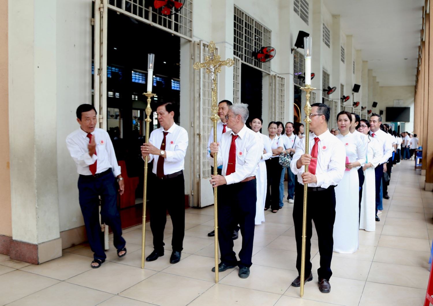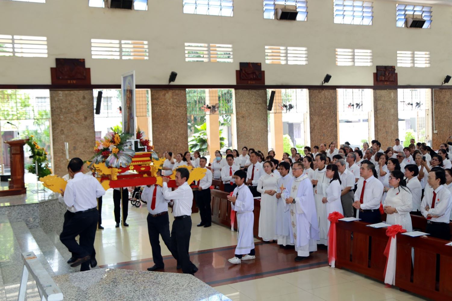 Lúc 10giờ, Thánh lễ khởi sự với đoàn rước từ hành lang giáo xứ, tiến vào cung thánh.