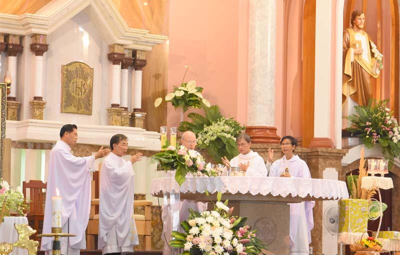 Lúc 10g15, Lm Vinh Sơn Vũ Ngọc Đồng đã chủ tế Thánh lễ. Đồng tế có 20 Lm trong Giáo phận.