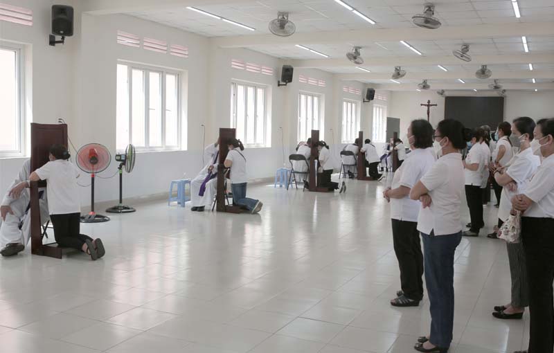 Ngay sau đó, lúc 9g15, quý cha Dòng Mẹ Chúa Cứu Chuộc, giúp cộng đoàn Sám hối – Xưng tội.