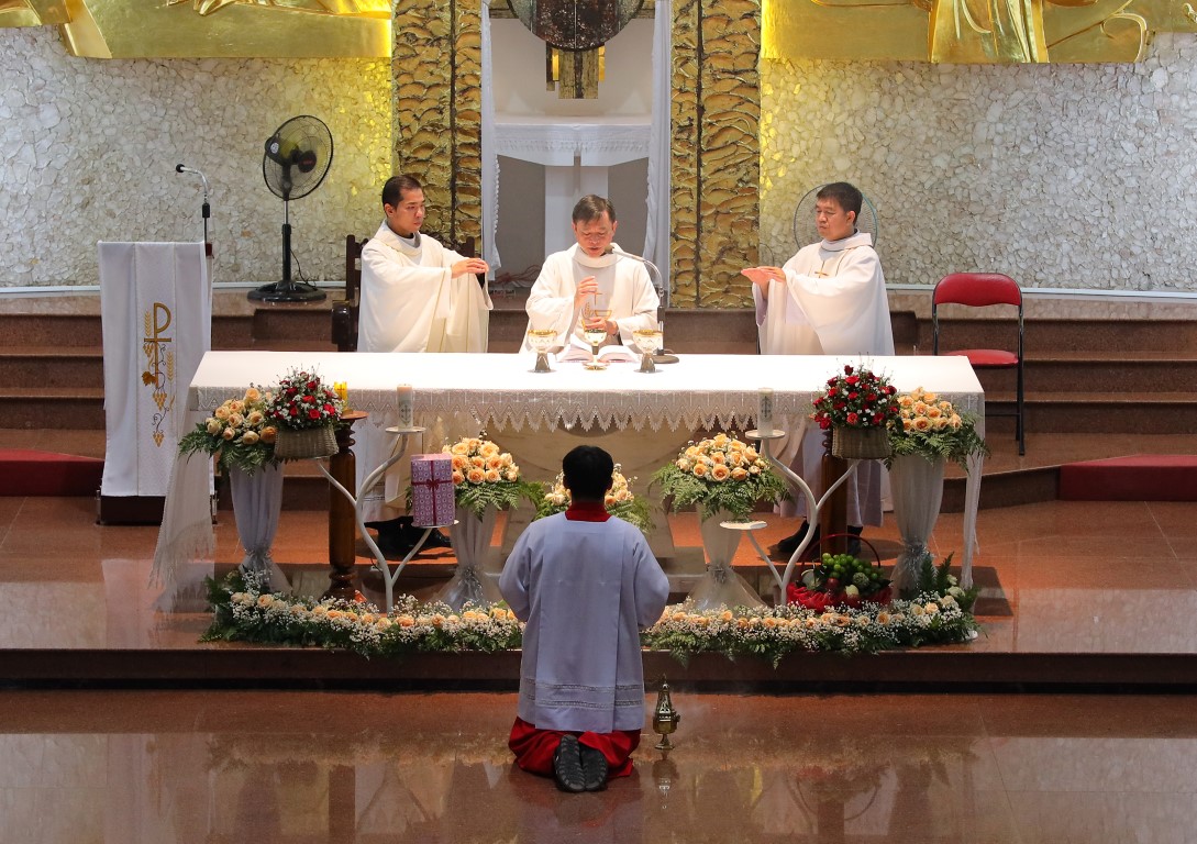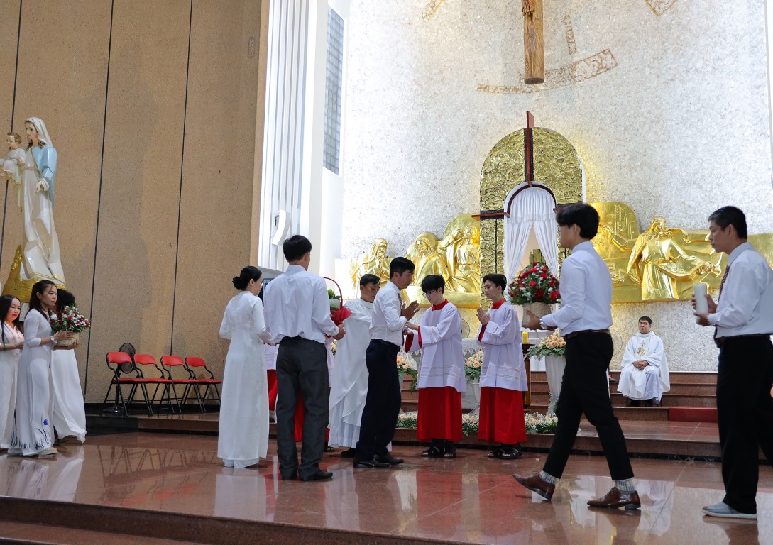 Đồng tế với Lm Phanxicô còn có: Lm Phêrô Phạm Kim Quyền - Phó Giám Đốc Caritas TGP Sài Gòn, Lm Martino Đinh Vũ Minh Thắng - Phó xứ Nam Hòa.