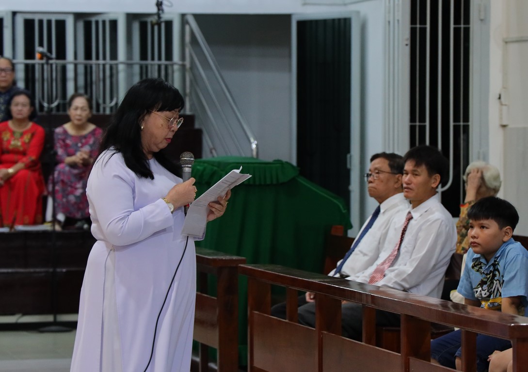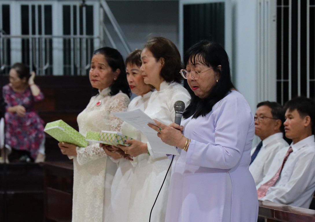 Trước khi nhận phép lành cuối lễ, bà Maria Hoàng Thị Nhiễu - trưởng BLK Caritas hạt Chí Hòa - đại diện BLK ngỏ lời cảm ơn đến quý linh mục đồng tế, quý tu sĩ nam nữ, HĐMVGX Nam Hòa, các thành viên BLK và cộng đoàn dân Chúa đã hiệp dâng Thánh lễ mừng bổn mạng BLK Caritas hạt Chí Hòa hôm nay.