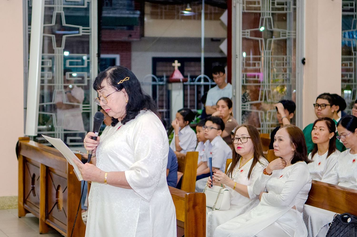 Sau lời nguyện hiệp lễ, chị đại diện Ban Liên kết Caritas hạt Chí Hòa ngỏ lời cảm ơn đến các linh mục và mọi người đã hiệp dâng Thánh lễ cầu nguyện cho Hội.