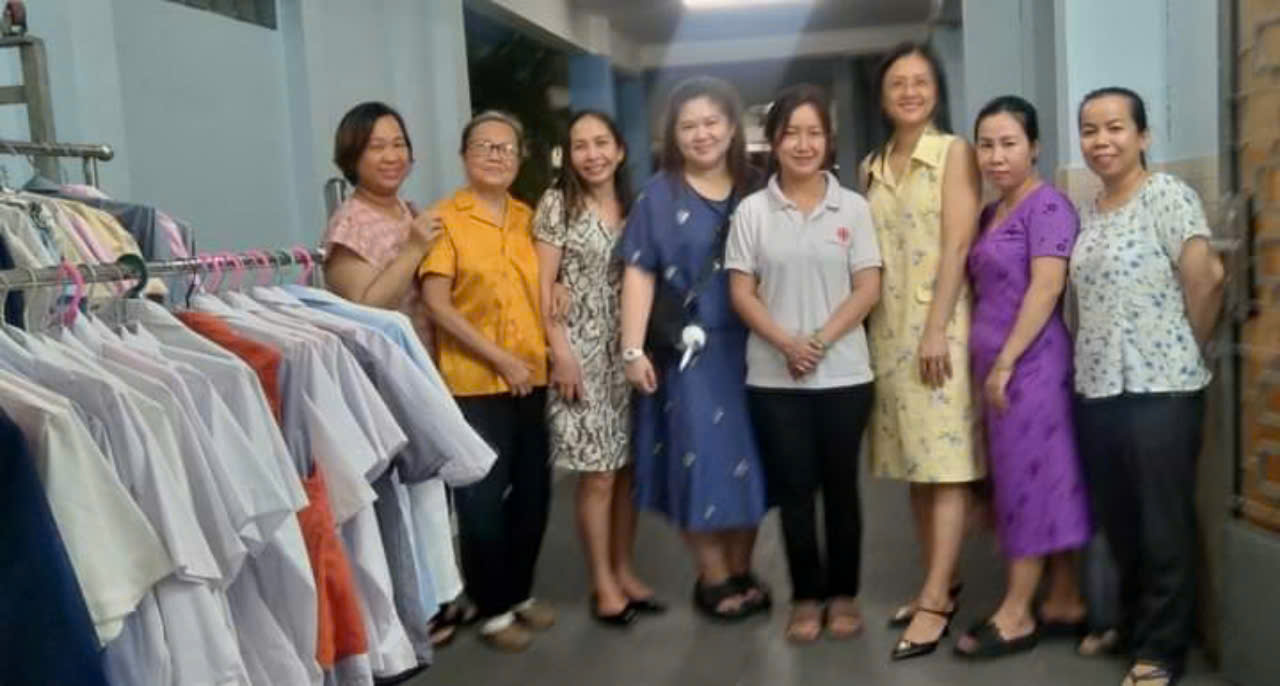 Quần áo các học viên may thực hành (nhiều quần tây , áo sơ mi, áo kiểu...) sẽ được đem tặng bà con nghèo nhân dịp Ban Bác Ái Xã Hội Caritas Giáo Xứ Hàng Xanh đi làm công tác Mùa Vọng vào tháng 12/2024 sắp tới.