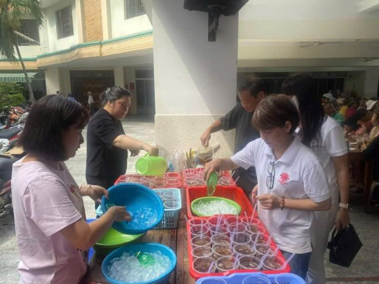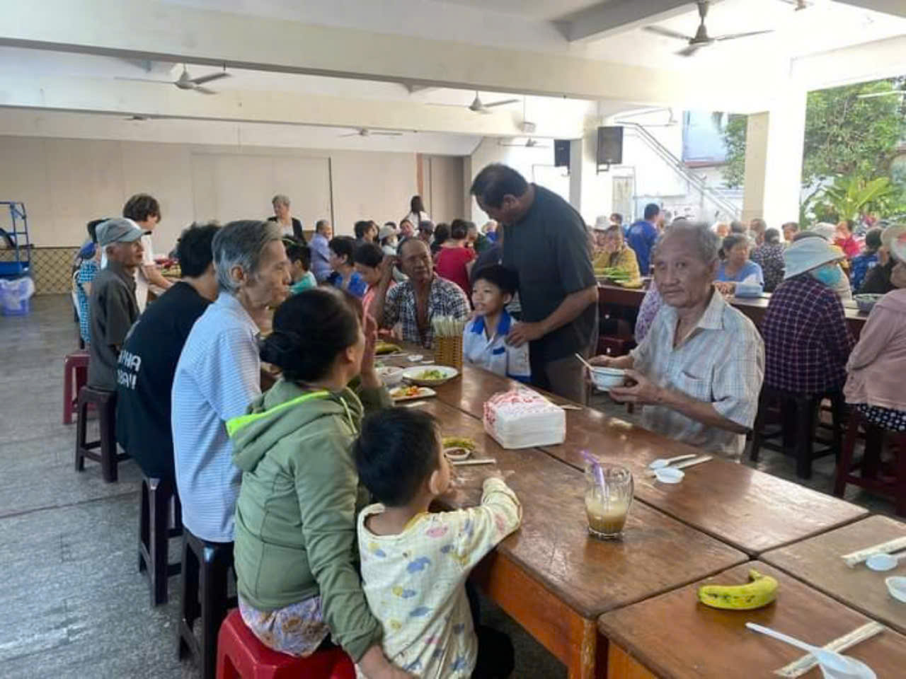 Hôm nay là ngày dành cho người nghèo nên có phiếu hay không có phiếu cứ ghé vào là được mời ăn. Ban bếp phụ trách nấu 400 tô phở đã bắt đầu làm việc từ 5 giờ sáng, đến 10 giờ là giờ khách đến, những tà áo trắng Caritas của toàn Hạt Gia Định đi tới lui dập dìu như những con thoi để hướng dẫn và đưa khách đến tận chỗ ngồi, không khí vui tươi, ấm áp như một ngày hội, có cha Chánh xứ Giuse của giáo xứ Hàng Sanh và cũng là cha Linh hướng của Caritas Giáo Hạt Gia Định đi hỏi thăm từng người.