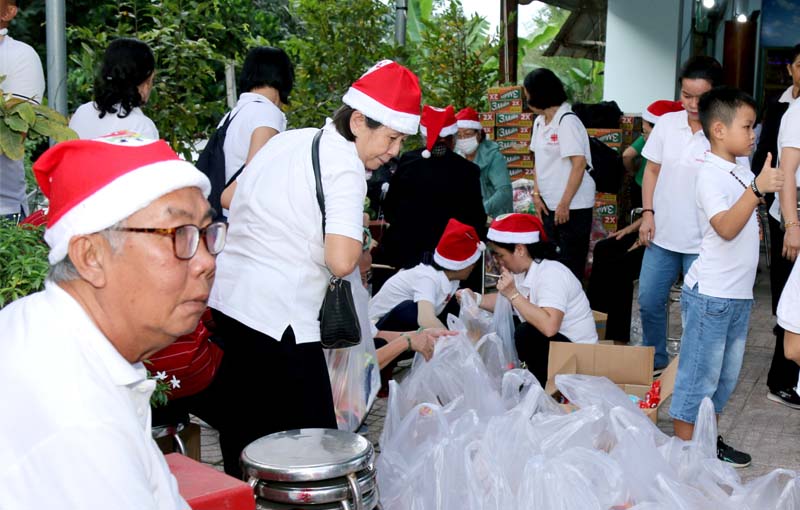 Và cuối cùng là thời điểm trao tặng quà cho các em thiếu nhi và người có hoàn cảnh khó khăn. Một phần quà nhỏ cũng giúp gia đình họ đỡ phần nào những thiếu thốn trong tình hình hiện nay, phần quà gồm: Gạo, Mì gói, dầu ăn, nước mắm, nước tương, đường, muối I ốt, sữa hộp, cá hộp, kem đánh răng. Quà cho thiếu nhi gồm: tập, bút bi, bút chì sáp tô màu, sữa tươi, kẹo que, bánh quy, bánh Snack, nón Noel.