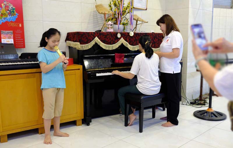 Em nào lành lặn đều được đi học tại các trường tiểu học, trung học. Đặc biệt có 2 em khiếm thị đàn và hát rất hay; đoàn đã nghe các bé biểu diễn đàn và hát thay cho lời cảm ơn đến sự quan tâm của Carritas TGP và Giáo hạt Phú Nhuận.