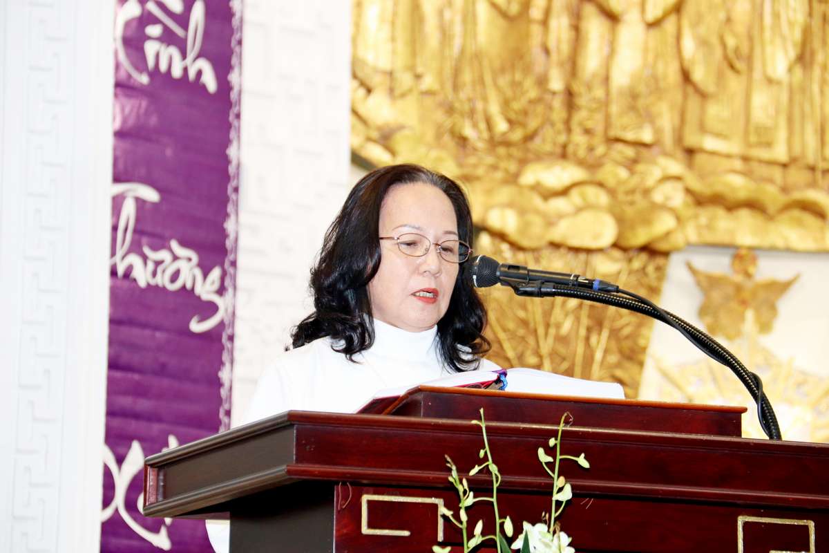 Trước khi Linh mục chủ tế ban phép lành cuối lễ, chị Maria Phạm Thanh Thủy, trưởng Caritas giáo hạt Tân Định có lời tri ân các linh mục đồng tế, các sơ văn phòng Caritas, khách mời cùng các thành viên Caritas giáo hạt Tân Định và bếp ăn Tình thương giáo xứ Vườn Xoài.