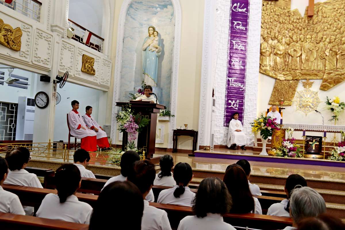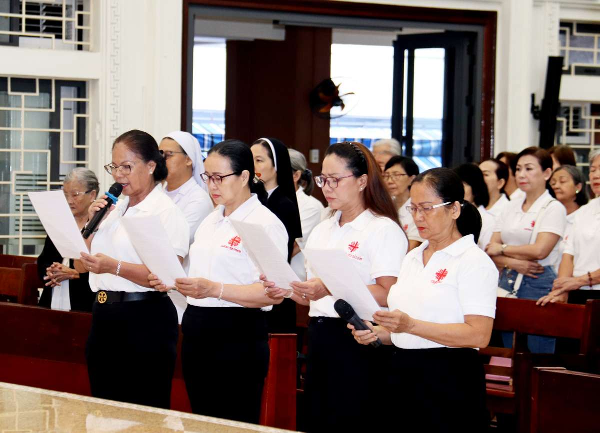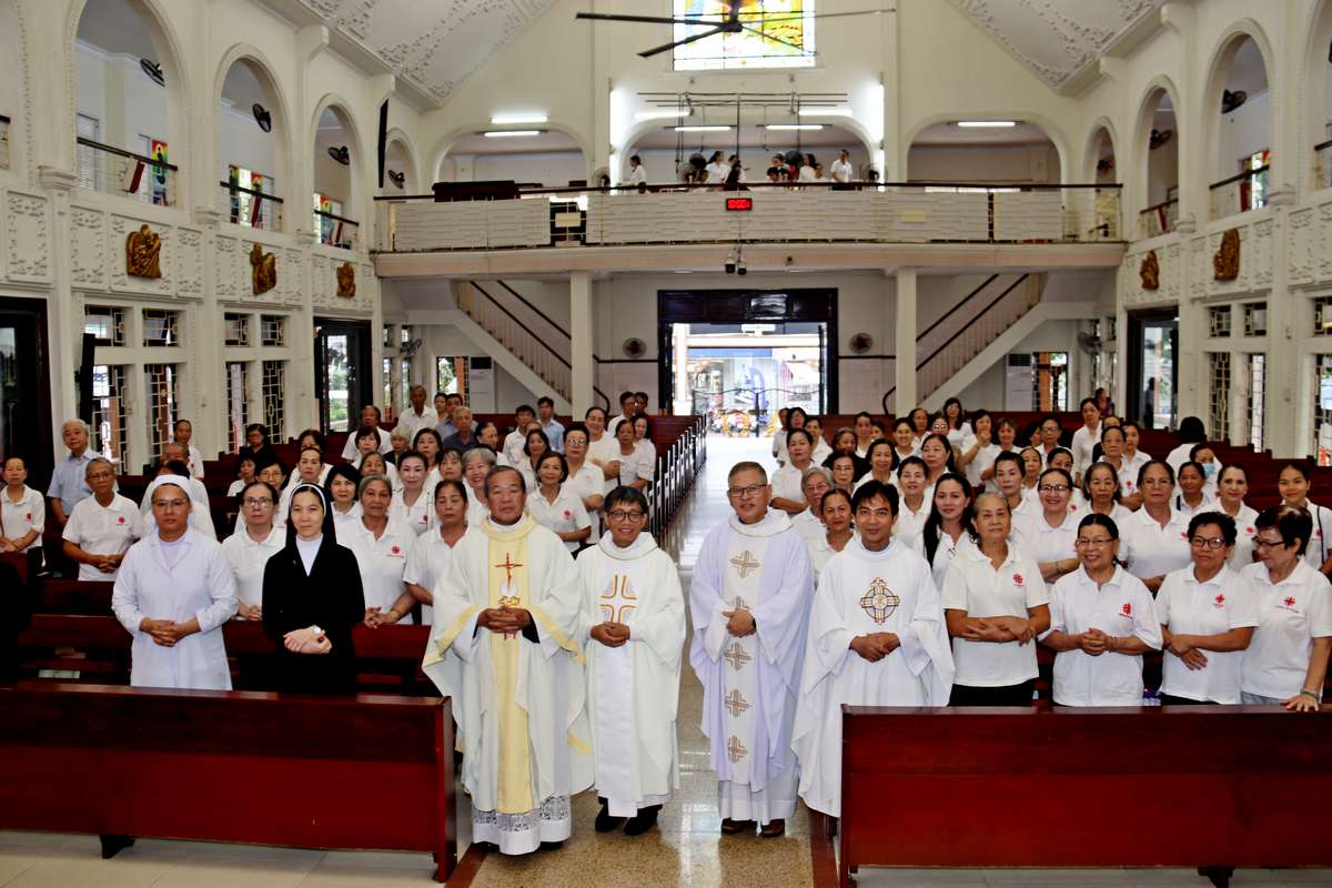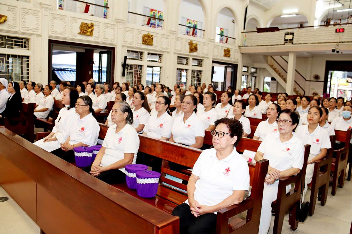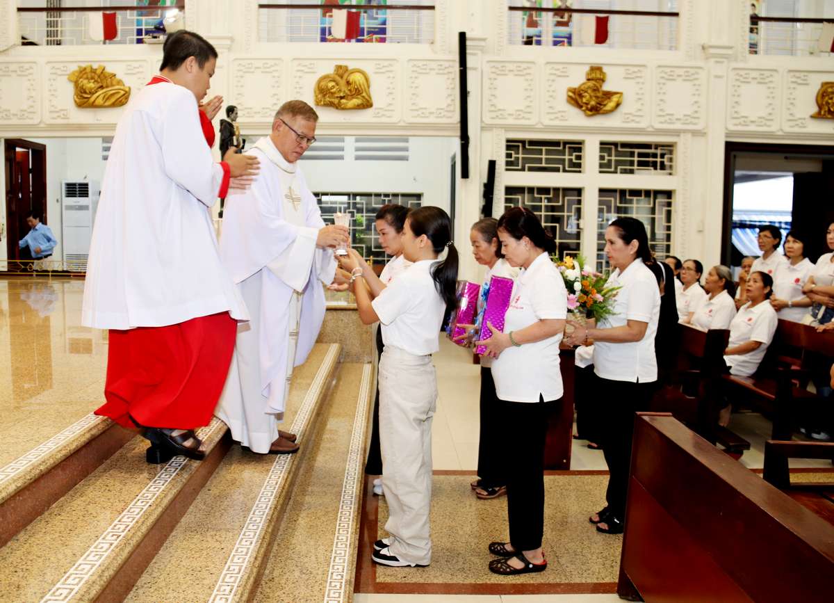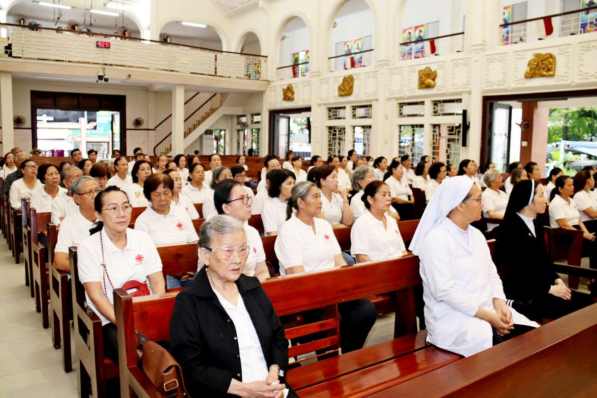 Tham dự Thánh lễ có các Sơ văn phòng Caritas, các thành viên Caritas hạt Tân Định và thành viên của bếp ăn Tình thương giáo xứ Vườn Xoài.