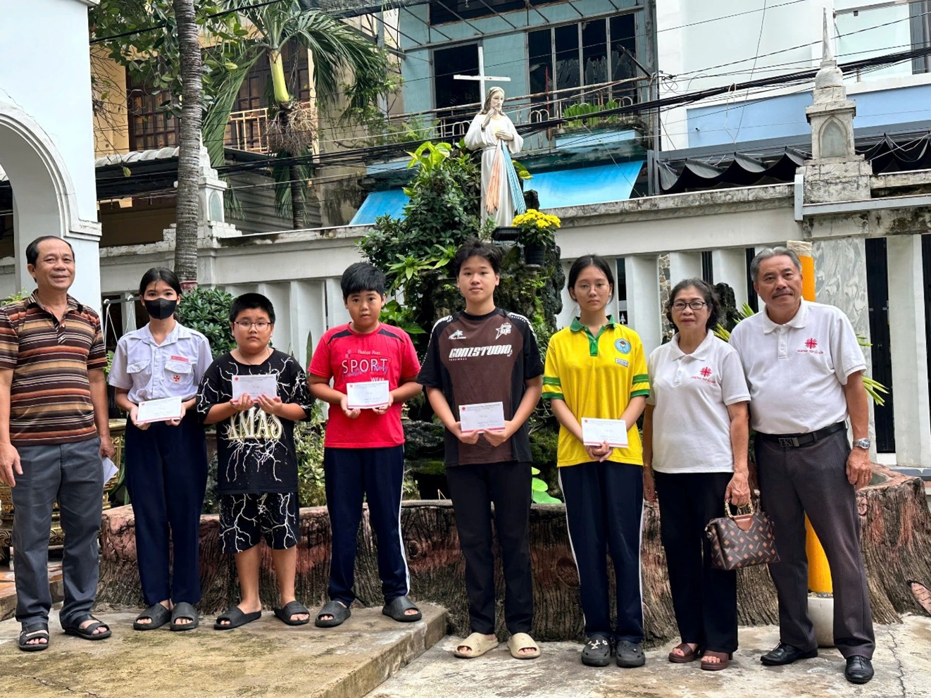 Trước khi năm học mới bắt đầu, Ban Liên Kết đã tổ chức một chuyến đi đến từng giáo xứ để trao học bổng cho 84 em trong giáo hạt. Những nụ cười rạng ngời từ các em học sinh chính là minh chứng rõ ràng nhất cho sự mang lại hy vọng và niềm vui từ chương trình. Không chỉ có học bổng, các em còn nhận được những lời chia sẻ, động viên từ Cha chánh xứ và các anh chị em thành viên Caritas, khẳng định rằng giáo xứ luôn đồng hành cùng các em trong hành trình học tập.