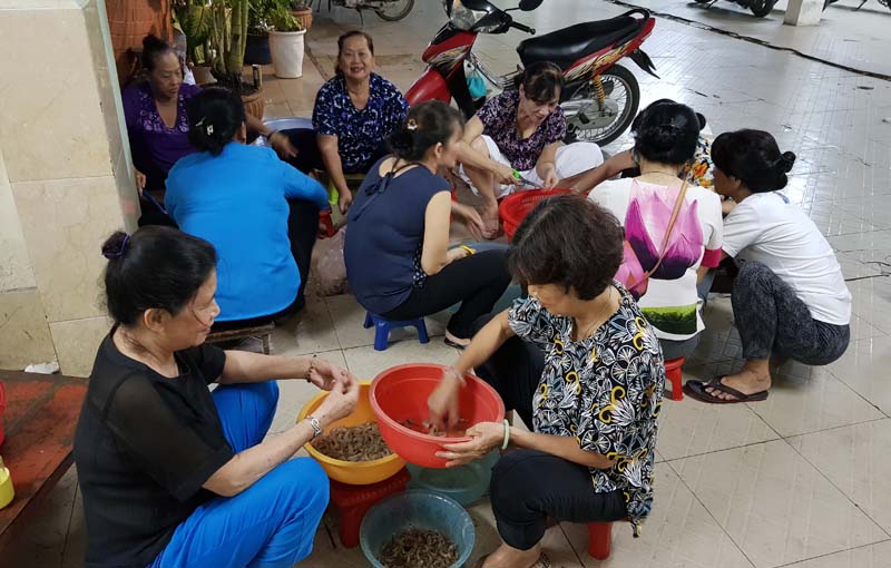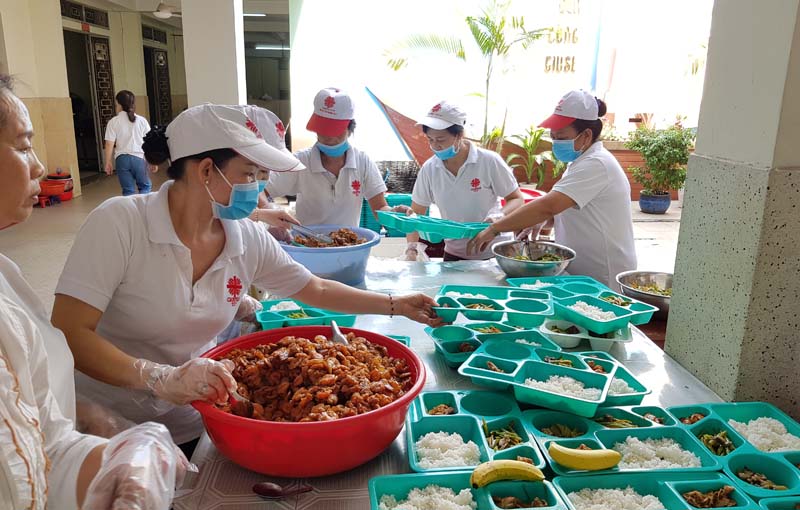 Thánh lễ kết thúc, các thành viên Caritas lại cùng nhau chuẩn bị cho công việc ngày hôm sau 4/11/2019 – Cha chánh xứ và ban BAXH-Caritas giáo xứ Hàng Xanh tổ chức bữa cơm cho người nghèo lúc 11g00. Khách mời tham dự là 300 người nghèo trong xứ và ngoài xứ không phân biệt tôn giáo. Bữa cơm được tổ chức nhằm hưởng ứng ngày Thế giới Người nghèo lần 3 do Đức Thánh Cha Phanxicô mời gọi, và tinh thần sống Mùa Vọng sắp đến. Sau bữa cơm, mỗi khách mời còn nhận thêm quà là thùng mì và 100.000đ.