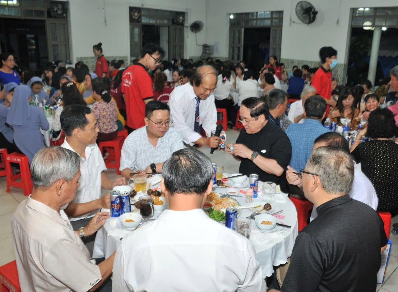 Sau Thánh lễ Quý Linh mục, Quý nữ tu, Quý ân nhân cùng tất cả Quý khách đã ở lại chia sẻ niềm vui trong bữa tiệc thân mật với Ban Caritas tại Hội quán Giáo xứ Tam Hà. Trong bữa tiệc chị Cecilia Nguyễn Thị Bích Hồng – Trưởng Caritas Tam Hà chia sẻ hoạt động một năm của Ban Caritas: “Tạ ơn Chúa, nhờ sự quan tâm, đồng hành, hướng dẫn và tạo điều kiện thuận lợi của Cha Chánh xứ Giuse. Cha Giám Đốc Giuse, Quý Cha, Quý Sơ Văn phòng Caritas TGP Sài Gòn và nhờ tấm lòng yêu thương quảng đại của Quý vị Ân nhân xa gần, đã chung tay góp sức với Ban Caritas chúng con, nhờ đó chúng con mới có thêm nhiều cơ hội để thực thi bác ái yêu thương.”