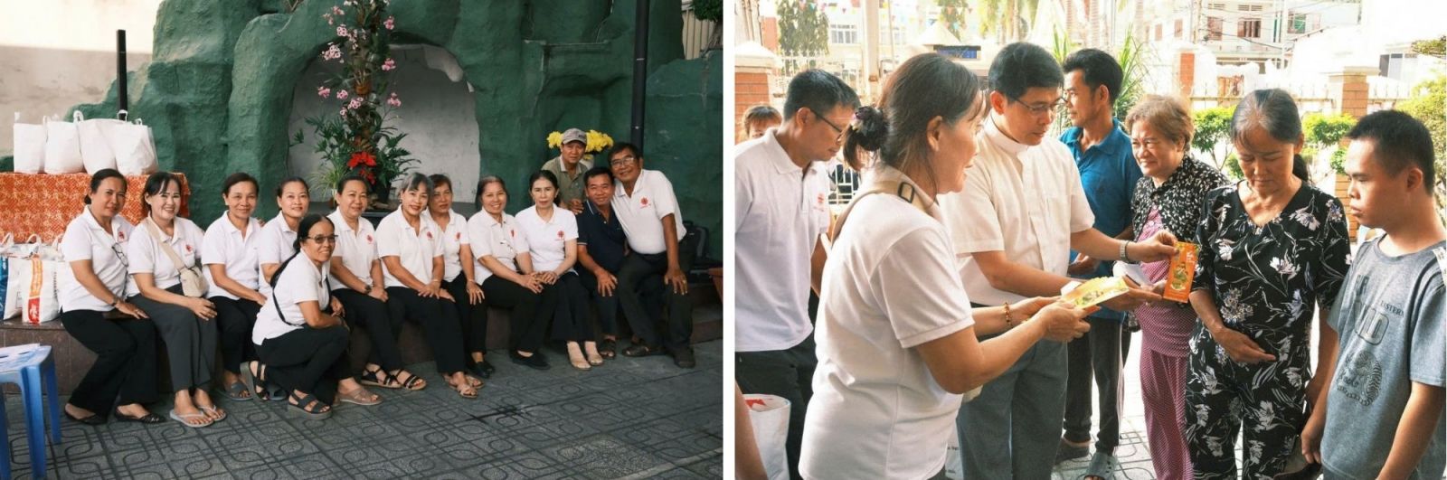 Những phần quà được đưa đi trao tận tay những người cần giúp đỡ, từ những cụ già cô đơn đến các gia đình nghèo khó. Ngoài các anh chị em Caritas còn có quý linh mục chánh xứ cùng đồng hành, đến tận nơi trọ của những mảnh đời bất hạnh mưu sinh bằng nghề bán vé số dạo, để trao đi những gói quà yêu thương.