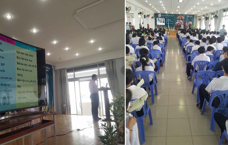 Nhân cơ hội ngàn vàng này, Caritas Long Xuyên lồng ghép vào chương trình chuyên đề truyền thông “buôn bán người” với các mục thuyết trình về nguy cơ, nhận diện, đề phòng, thoát thân. Bên cạnh đó cũng phát tờ rơi về buôn bán người, đố vui có thưởng, đóng kịch và sinh hoạt trò chơi liên quan để cảnh giác. Qua quan sát thấy phụ huynh và các em rất sát sao theo dõi, tham gia nhiệt tình, đồng thời các em tìm hiểu ơn gọi cũng như các em dự tu sẵn sàng làm cầu nối truyền thông khi về các giáo xứ. Buổi truyền thông đã mang về nhiều kết quả đáng khích lệ.