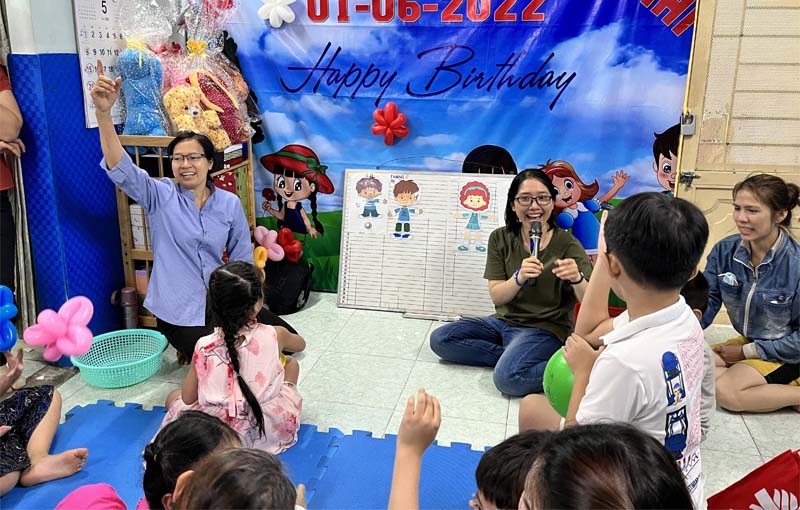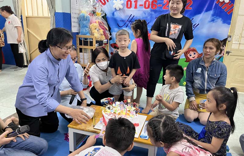Trong dịp mừng ngày Quốc tế Thiếu nhi 2022, tại Mái ấm Têrêsa Calcutta, ngày 28/5/2022, Ban hỗ trợ người KT Caritas TGP TP. HCM đã tổ chức cho các em thiếu nhi khuyết tật não một chương trình vui chơi mừng ngày Quốc tế Thiếu nhi và sinh nhật một số bé sanh trong tháng 3 đến tháng 6.