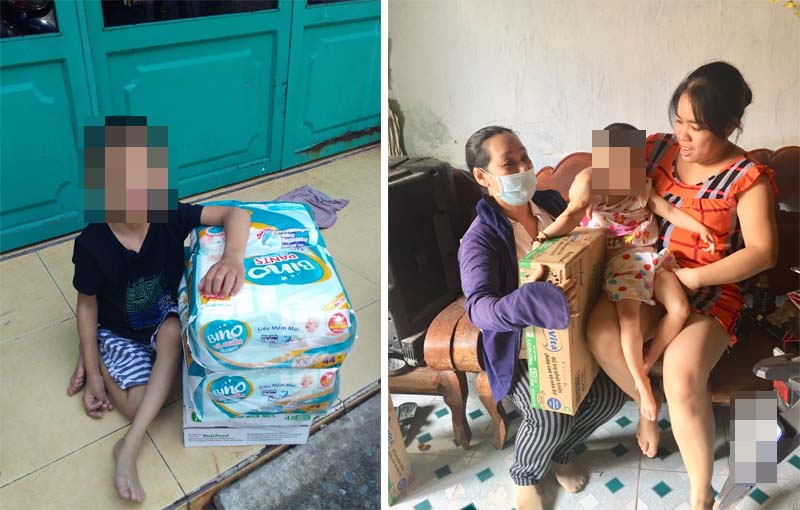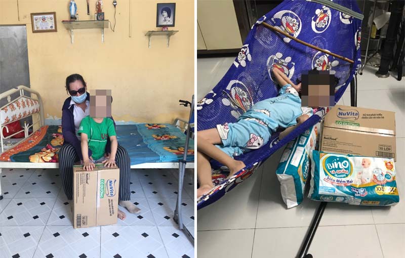 Chúng tôi cũng xin cám ơn anh chị Bùi Quang Chỉnh và Nguyễn Thị Thu Thủy đã hỗ trợ chi phí để chúng tôi có thể thực hiện cho Chương trình “Ly Sữa Tình Thương”, hỗ trợ sữa và tã lót cho khoảng 40 trẻ bị tổn thương não có hoàn cảnh khó khăn ở Hóc Môn, Thủ Đức và ngoại ô thành phố. Chương trình đã thực hiện từ tháng 4/2020 và vẫn tiếp tục cho đến nay. Qua chương trình này đã giúp đỡ rất nhiều cho các gia đình nghèo, vừa phải kiếm sống vừa phải chăm sóc cho một bé khuyết tật nặng trong gia đình. Mỗi tháng quý cộng tác viên của Caritas giáo xứ đến thăm hỏi và trao tã sữa cho các gia đình. Đây cũng nguồn động viên và khích lệ tinh thần cho gia đình và các bé rất nhiều.
