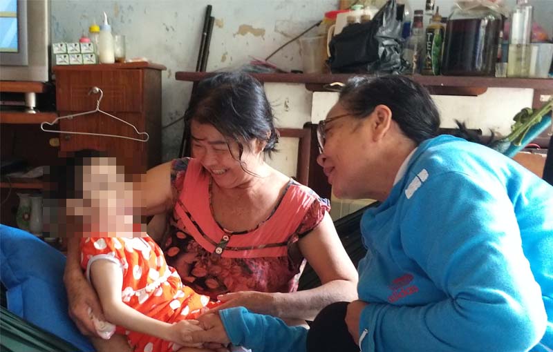 Mới đến đầu hẻm đã thấy hàng xóm chạy vào nhà báo cho bà nội hai bé C.T và A.T: “Người ta đem sữa tã đến cho kìa, nội ơi!”