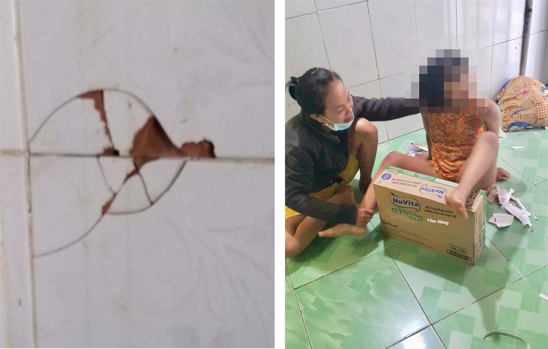 Vừa nói mẹ bé vừa chỉ những mảng nứt trên tường gạch bông.