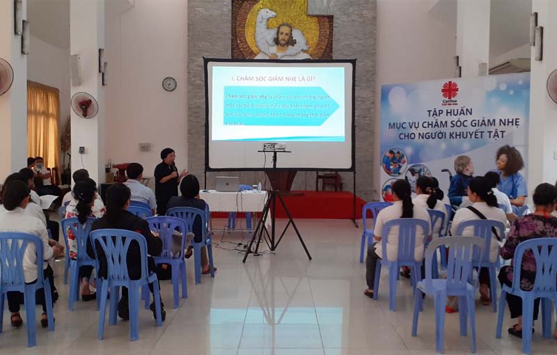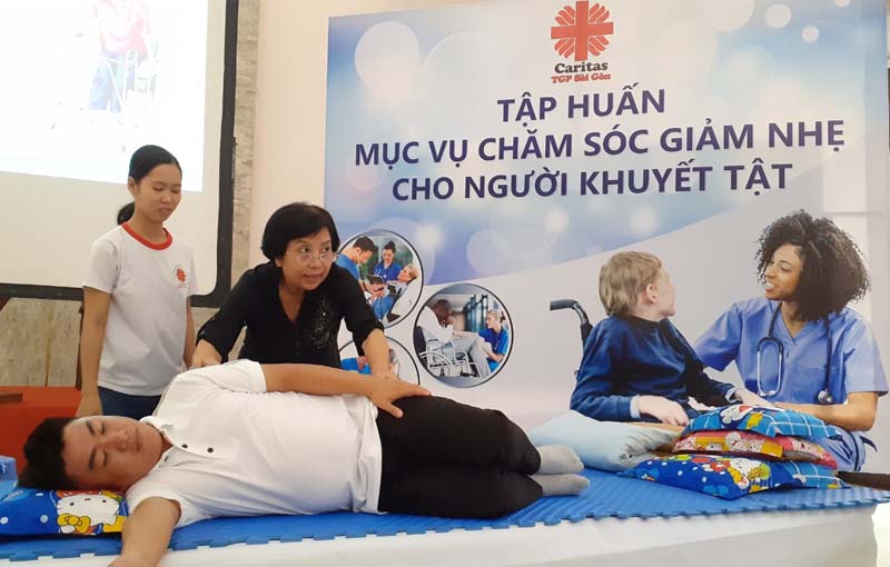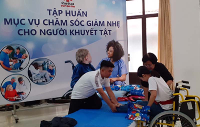 Đây là chương trình bồi dưỡng kiến thức, kỹ năng cho các thành viên Caritas và những có có công việc có liên quan về việc “chăm sóc giảm nhẹ cho người khuyết tật” tại nhà và cộng đồng. Các học viên sẽ được nâng cao kiến thức, năng lực để thực hiện các công việc chăm sóc cho người bệnh, người khuyết tật (NKT) nặng tại nhà. Các học viên được hoàn chỉnh các kỹ năng vốn có đồng thời được bổ sung những kiến thức mới để đáp ứng những nhu cầu thiết yếu của bệnh nhân.