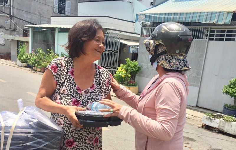 Về phía các anh chị em Caritas sau khi nhận các phần hỗ trợ từ văn phòng, họ đã nhanh chóng chuyển gửi đến tận tay từng người, từng hoàn cảnh khác nhau. Bên cạnh phần hiện kim, các anh chị em nghèo còn được nhận các phần cơm, nước uống, món tráng miệng. Sự tiếp sức này đến từ các Công ty: Công ty thực phẩm Mina, Công ty Thép Pomina, Công ty Ánh Hồng. Hạnh phúc dư tràn nở rộ trên khuôn mặt từng người, cả người nhận lẫn người trao. Thật xúc động khi nhìn thấy những hình ảnh quý Cha xứ, Cha linh hướng Caritas giữa trưa hè nắng gắt mà vẫn chung tay với đoàn chiên để trao các phần quà đến cho người nghèo. Yêu thương thực sự đã lan tỏa yêu thương!