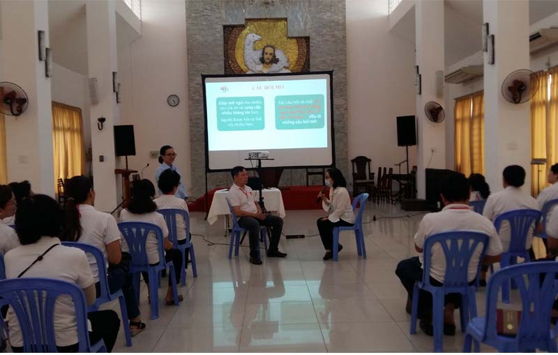 Trình bày viên của buổi tập huấn là Soeur Elisabeth Marie Vũ Thị Tuyết Minh, phụ trách Ban hỗ trợ NKT của Cartias TGP Sài gòn. Cùng tham dự buổi tập huấn là 55 thành viên Caritas thuộc các Giáo hạt: Chí Hòa, Gia Đình, Gò Vấp, Phú Nhuận, Sài gòn – Chợ Quán, Tân Định, Tân Sơn Nhì, Xóm Chiếu, Xóm Mới và Phú Nhuận.