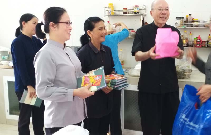 Tại mỗi phòng Cha Giám Đốc bắt tay trao phong bì lì xì cho từng bệnh nhân. Các thành viên khác đem bánh chưng và cà phê đến tận giường. Những lời chúc, những lời cám ơn trao nhau. Có phòng đại diện nói lời cám ơn Cha và cả đoàn. Có anh chàng vui quá “chúc Cha sức khỏe, làm ăn phát tài…”.
