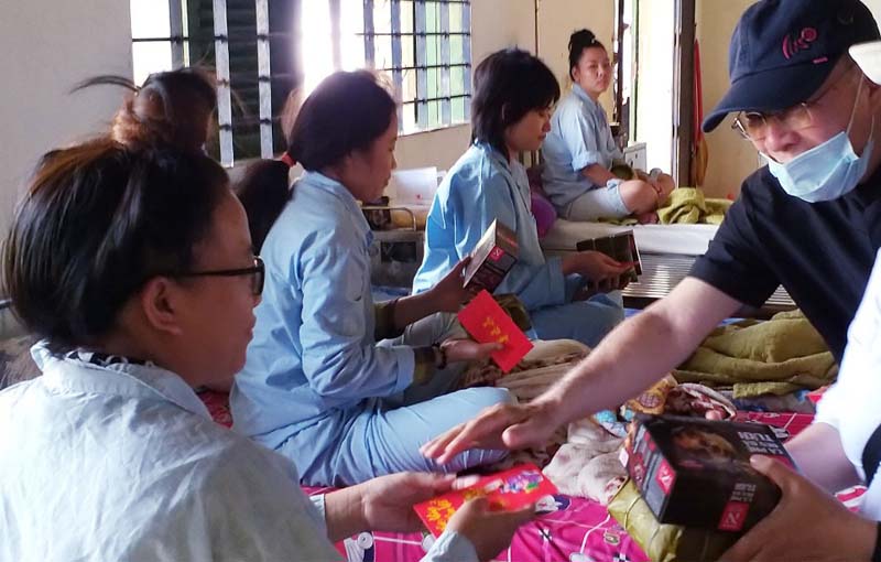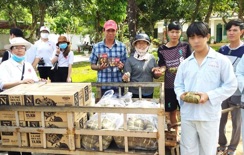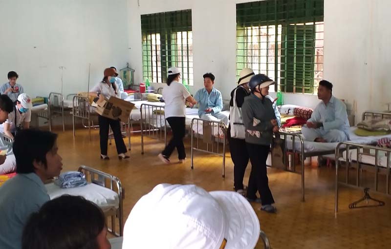 Thấy xe của đoàn vào cổng, các bệnh nhân tụ tập ở trước cửa phòng nhìn ra hớn hở. Cả năm rồi nay mới thấy một đoàn đông đảo vào thăm. Thời gian Covid, ngay cả người nhà cũng chỉ được gửi quà tại cổng!