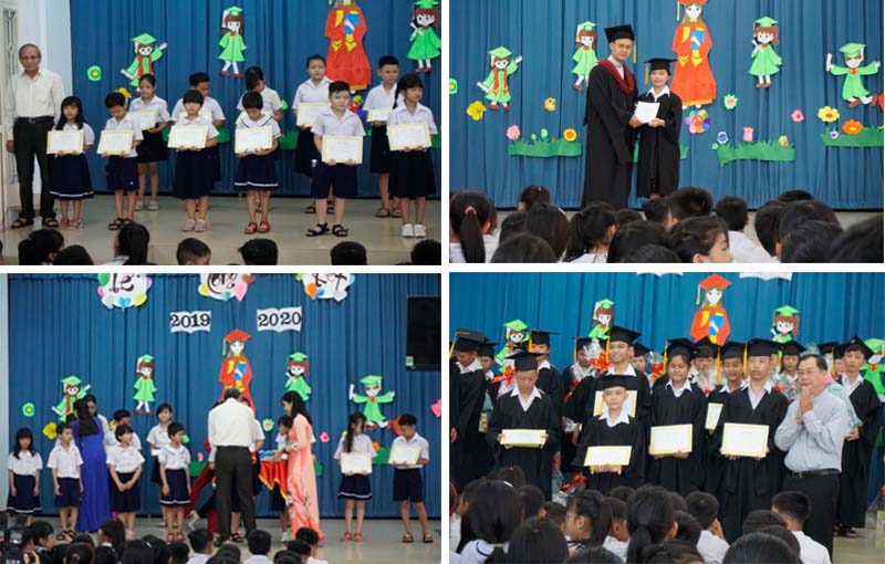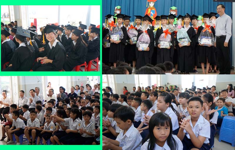 Cùng hiện diện có đại diện Trường Tiểu Học Bình Thuận, đại diện Hội đồng Mục vụ Giáo Hạt Tân Sơn Nhì, Caritas TGP Sài Gòn, Caritas Giáo hạt Tân Sơn Nhì, Quý ân nhân và đặc biệt là phụ huynh của các em học sinh Khối 5, những em được khoác lên mình trang phục đặc biệt cho ngày đặc biệt - TỐT NGHIỆP- trong cuộc đời mình. Vì năm học mới sắp đến, có những em không thể tiếp tục việc học của mình vì nhiều lý do. Tổng số học sinh đến cuối năm học là 258 trong đó có 33 em tốt nghiệp Tiểu Học.