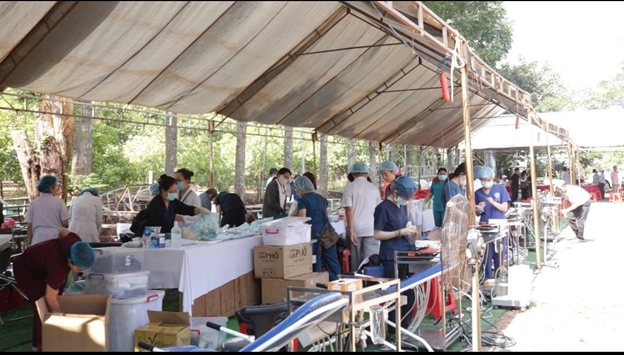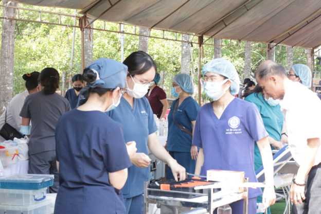 Chăm sóc răng miệng: Điểm nhấn đặc biệt của chuyến đi lần này là khu vực nha khoa lưu động. Các bác sĩ chuyên khoa đã tiến hành kiểm tra, nhổ răng sâu và tư vấn vệ sinh răng miệng cho các em nhỏ và người già.