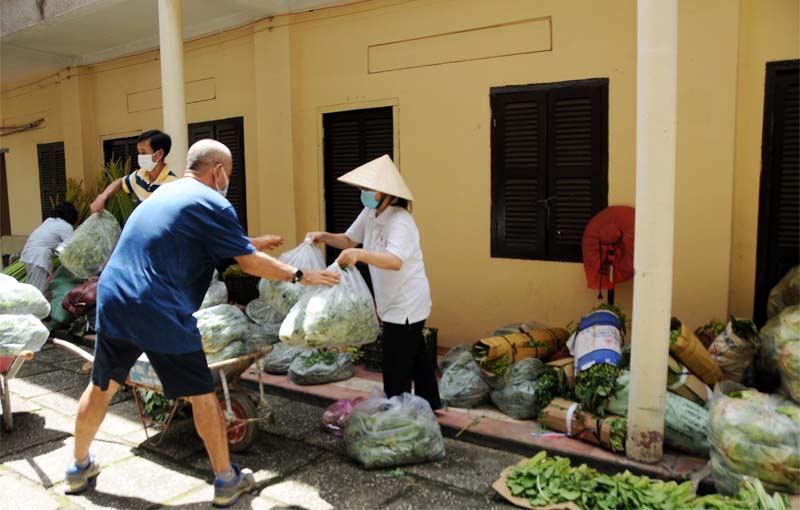 Linh mục chánh xứ Martinô hạt Gia Định đã tự lái xe đến nhận rau củ quả để phục vụ cho “Điểm phát cơm miễn phí hỗ trợ mùa dịch Covid” tại giáo xứ, Cha bộc bạch là mình đang nghĩ: “Không biết ngày mai mình lấy gì để nấu đây? Đúng lúc đó sơ Thủy gọi điện báo đến nhận rau củ quả. Tạ ơn Chúa con mừng quá, thế là bếp ăn lại có rau!” Cha cũng cho biết, người giúp Bếp ăn thì như “muối bỏ bể” nhưng Chúa vẫn nuôi dân của Ngài. Mình chỉ có “5 chiếc bánh và 2 con cá” trao cho Ngài và Ngài tiếp tục hóa ra nhiều, nuôi Bếp ăn trong suốt 8 năm qua. Mùa dịch này, mỗi ngày Bếp ăn lo cho hơn 1000 phần ăn: phục vụ cho những người nghèo đến nhận, khu cách ly, nhân viên làm công tác phòng dịch...trong địa bàn của phường 17 và 21 quận Bình Thạnh. Cha đã cảm ơn những người cộng tác giúp cho Bếp ăn luôn đỏ lửa để giúp người nghèo. Việc làm này cũng mang ý nghĩa truyền giáo.