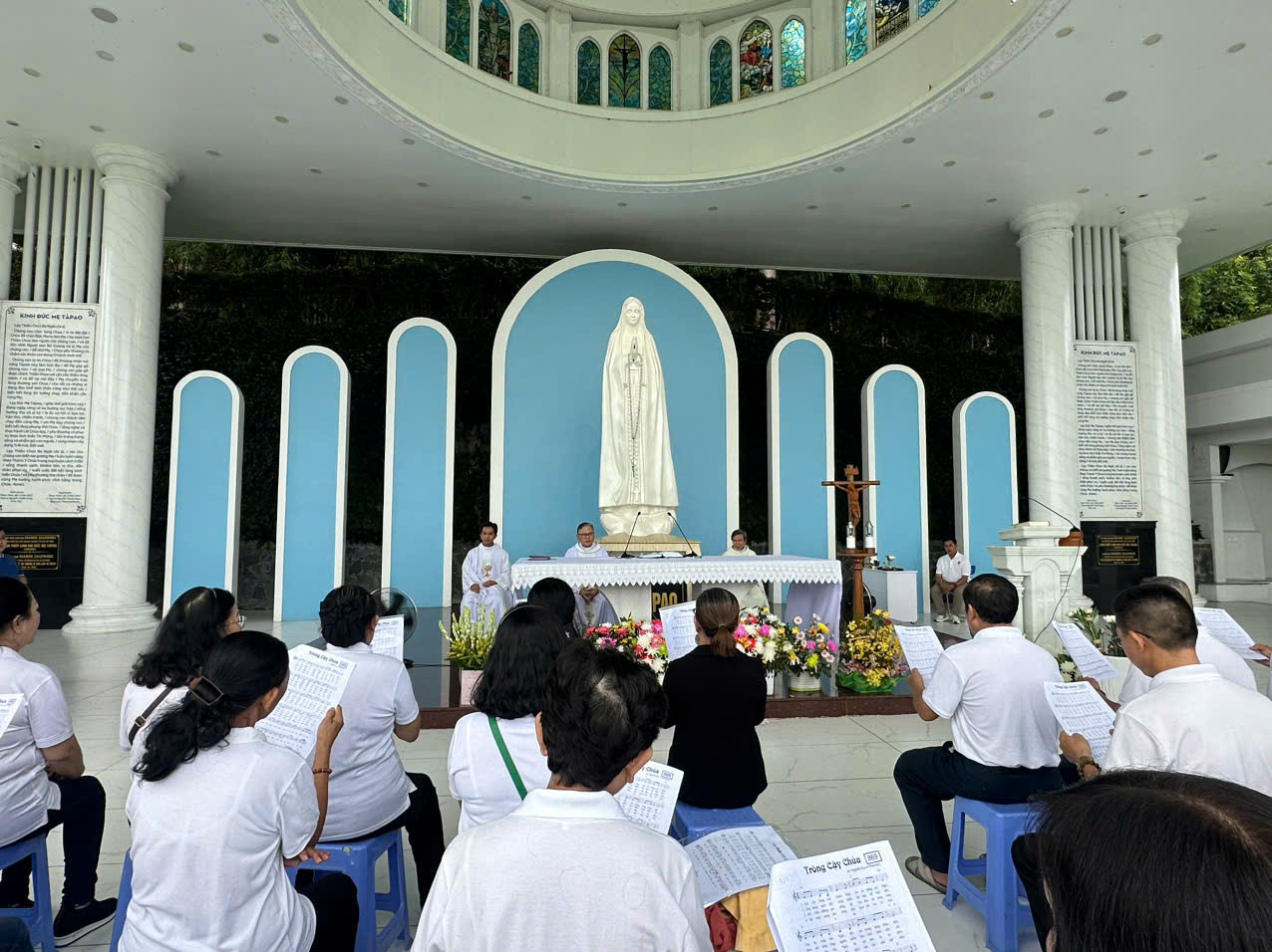 Đúng 9h00 sáng, tại Trung Tâm Hành Hương Đức Mẹ Tà Pao "Dưới Chân Mẹ", Quý Cha đồng tế dâng Thánh lễ Tạ Ơn cùng các thành viên BLK các Giáo hạt thật sốt sắng và ấm cúng, trong tâm tình Cha Con, huynh đệ với một lòng yêu thương gắn kết, vui buồn, thuận lợi hay khó khăn cùng sẻ chia. Nguyện dâng lên Mẹ bao vất vả khó khăn như trong bài chia sẻ của Cha Linh hướng Hạt Bình An - dù vẫn còn đó những vất vả và khó khăn nhưng có Mẹ luôn đồng hành ban muôn ơn khôn ngoan và sức khỏe để Quý Cha, Quý Soeur tiếp tục dìu dắt hướng dẫn các Anh Chị trong BLK chu toàn bổn phận của mình và gắn kết thành viên trong đại gia đình Caritas luôn bền chặt.