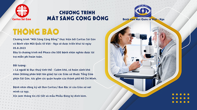 + Sau khi nhận được giấy đăng ký mổ mắt có xác nhận của Cha Chính xứ, Văn phòng Caritas Sài Gòn sẽ phối hợp với Bệnh viện Mắt Quốc tế Việt Nga để lên lịch mổ, và sẽ thông báo lại cho bà con qua số điện thoại đã đăng ký.