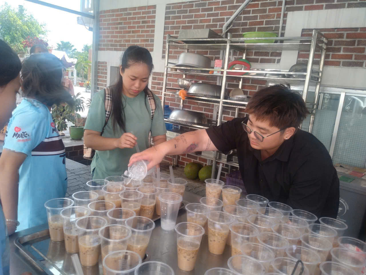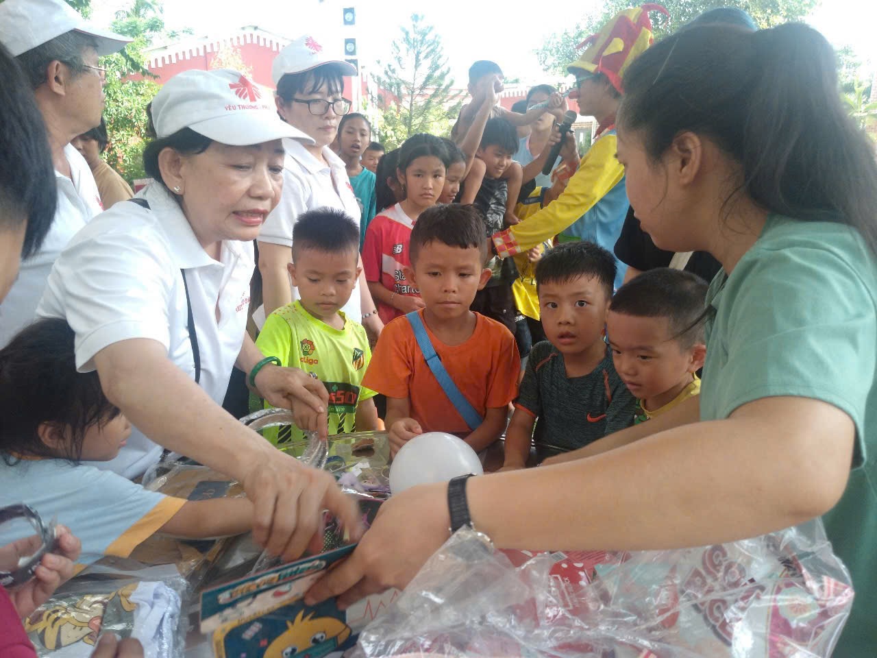Chúng tôi nhanh chóng chia thành hai nhóm: một nhóm vào bếp nấu bánh canh thơm ngon, một nhóm cùng chơi với các em. Điều đặc biệt hôm nay là có thêm chú hề và nhà ảo thuật, khiến các em há hốc mồm kinh ngạc, đôi mắt tròn xoe trước những màn trình diễn kỳ diệu. Nhưng niềm vui lớn nhất của các em vẫn là những món quà: bánh kẹo, bóng bay tạo hình, đồ chơi... Có em được tặng cặp sách mới, vui sướng xách cặp chạy tung tăng khắp sân.