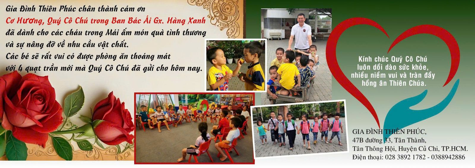 Trước khi về, chúng tôi còn gửi thêm 4 cây quạt trần cho phòng ăn để các em mát mẻ hơn. Xin Chúa ban ơn cho Gia Đình Thiên Phúc: thức ăn luôn đủ đầy, các em học giỏi, giấc ngủ an lành, các cha sơ được nghỉ ngơi. Để nơi này mãi là mái ấm hạnh phúc, nơi tình thương ngập tràn qua nụ cười thơ ngây và ánh mắt tin cậy của các em.