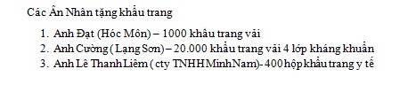 Danh sách Quý ân nhân đóng góp cho chương trình 4 triệu khẩu trang cho Phnom Penh