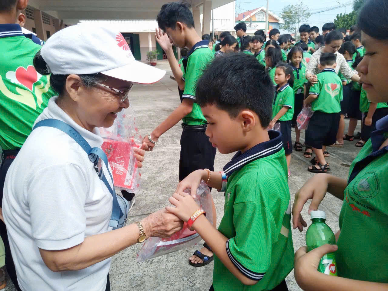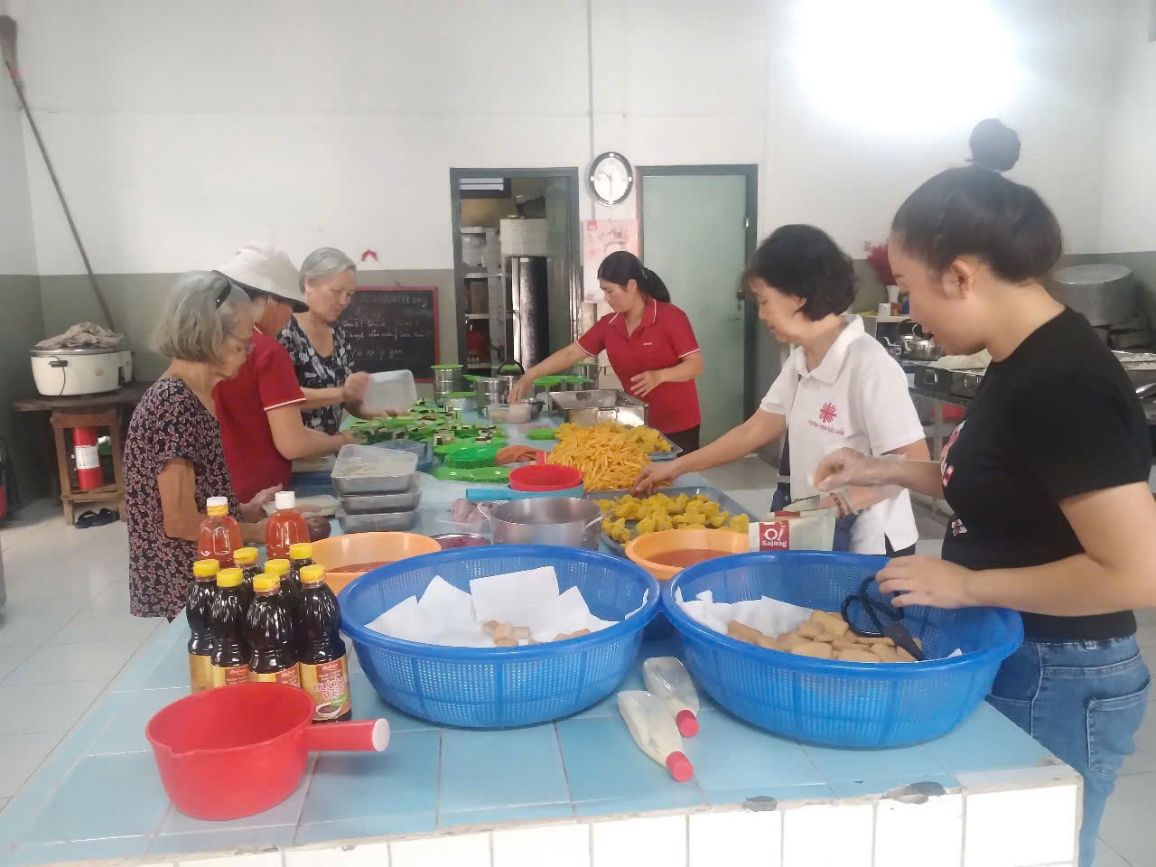 Ban Bác Ái Xã Hội Caritas Giáo Xứ Hàng Xanh của chúng tôi chia ra làm hai nhóm, một nhóm phục vụ bếp, chiên các món ngon mà trẻ con thường thích kết hợp với buổi cơm trưa của nhà trường, một nhóm khác chúng tôi phục vụ phát quà và sinh hoạt cộng đồng cũng như cho các em chơi trò chơi. Trò chơi thì bao giờ cũng vậy, thắng hay thua cũng được có thưởng chỉ khác là nếu thắng thì các em được tư chọn quà. Chúng tôi đã cố gắng học nhanh những biểu cảm bằng tay để "nói chuyện" với các em đôi chút như cám ơn, cô yêu con lắm...