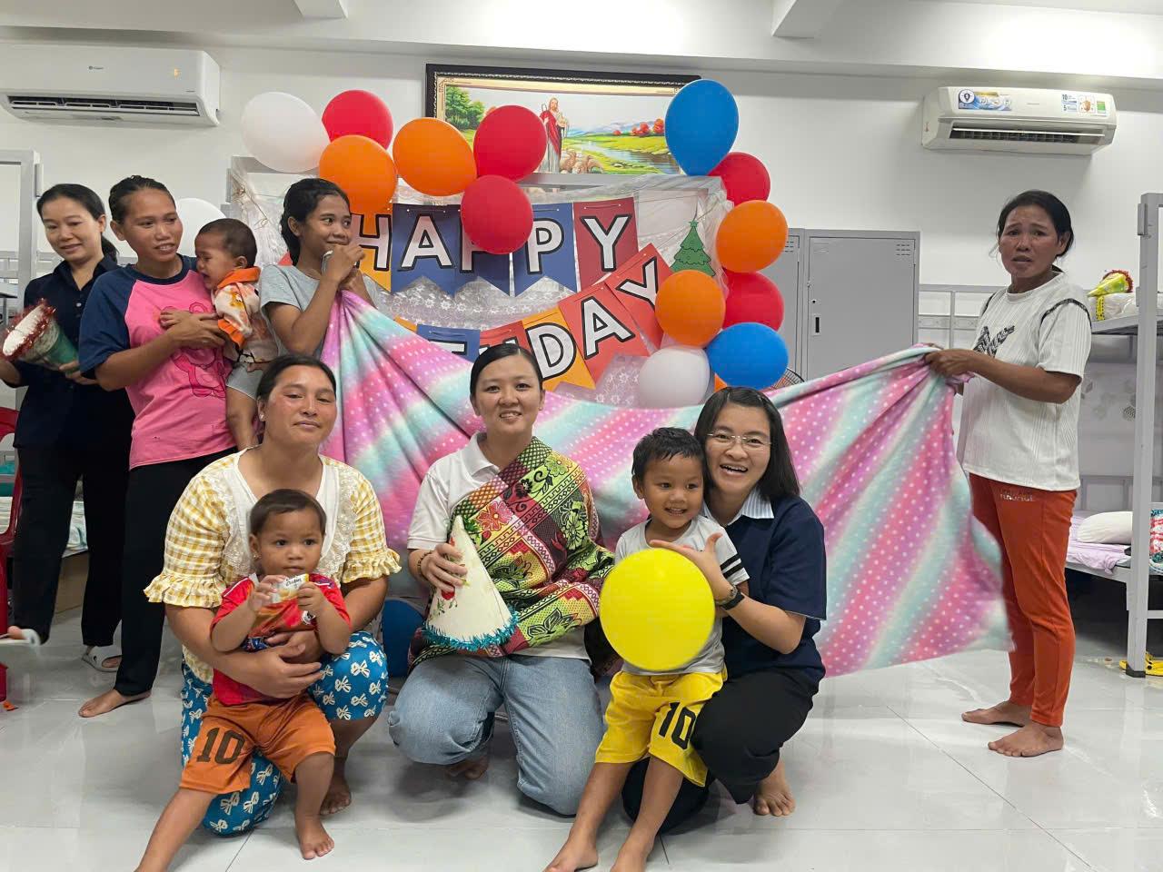 Trong bầu khí ấm áp ấy, bài hát chúc mừng sinh nhật Chúa Hài Nhi vang lên, tiếp nối là những lời ca chúc mừng sinh nhật dành cho các bệnh nhân đang lưu trú tại Mái Ấm.