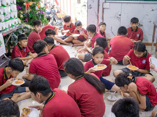 Buổi thiện nguyện không chỉ là dịp mang đến niềm vui ngày lễ cho các em, mà còn là cơ hội để sẻ chia sự quan tâm thông qua những hoạt động gần gũi và ấm áp. Nổi bật trong chương trình là bữa tiệc ẩm thực Giáng Sinh, nơi các em được quây quần bên nhau, thưởng thức những món ăn giản dị nhưng chan chứa tình thương do quý thầy cô và các anh chị tình nguyện chuẩn bị.