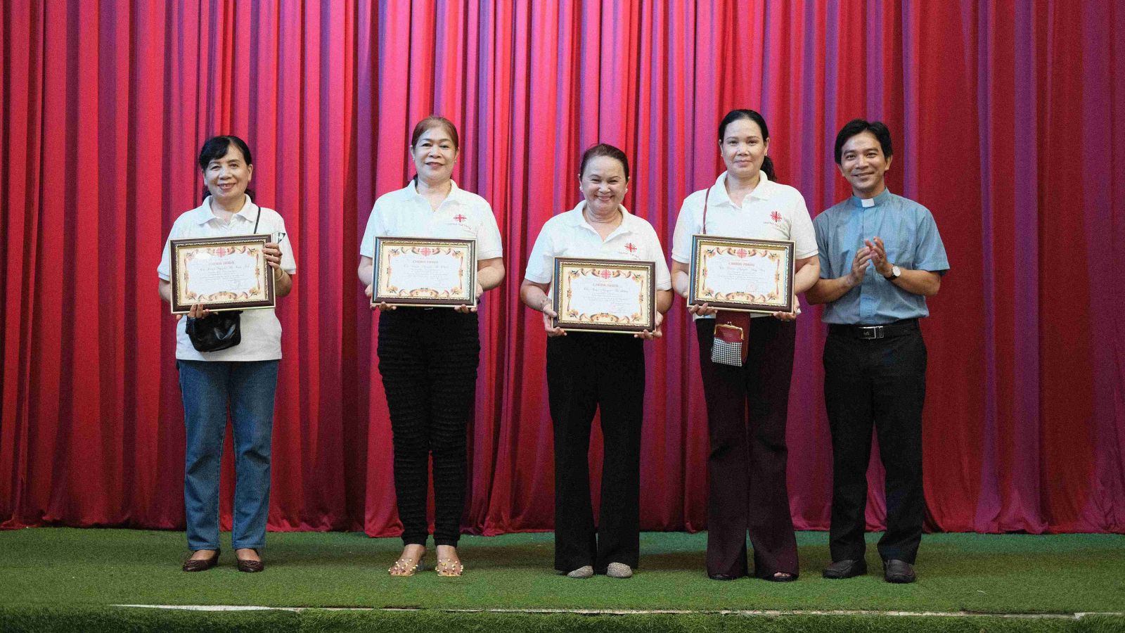 - Thứ ba, chúng ta thực thi bác ái với phương châm “cho cần câu chứ không cho con cá”. Cho nên, ngoài những chương trình bác ái thiết thực như phát học bổng, phát gạo, phát quà… hàng tháng, chúng ta cũng chú trọng đến việc đồng hành, hỗ trợ và giúp đỡ những gia đình khó khăn thoát nghèo.